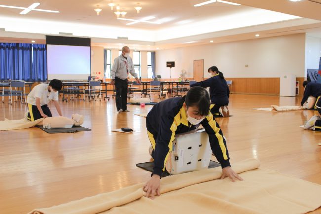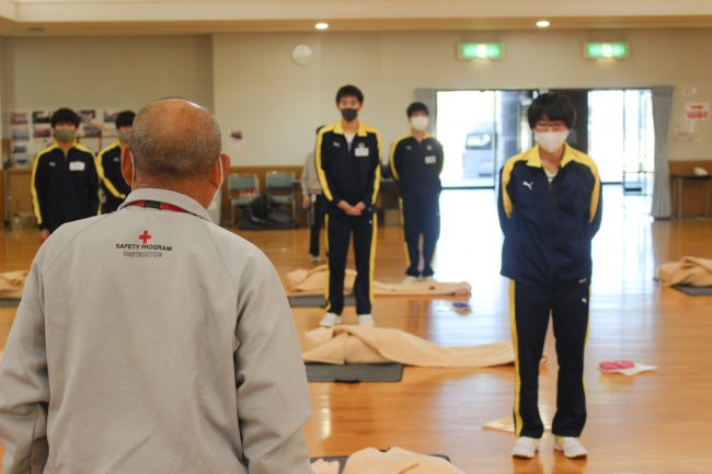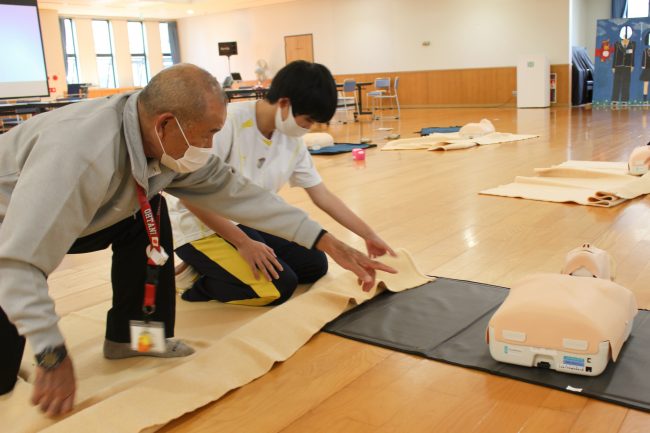 赤十字の方に講習いただき、命を守るための手法を懇切丁寧に教えていただきました。