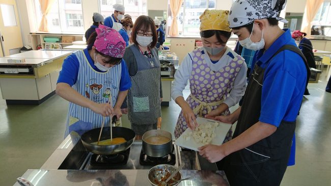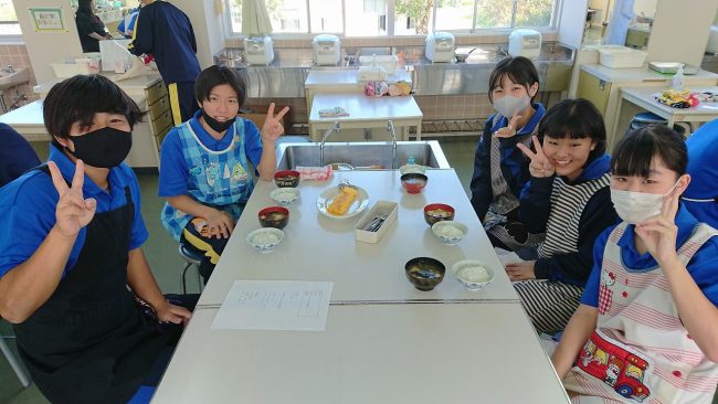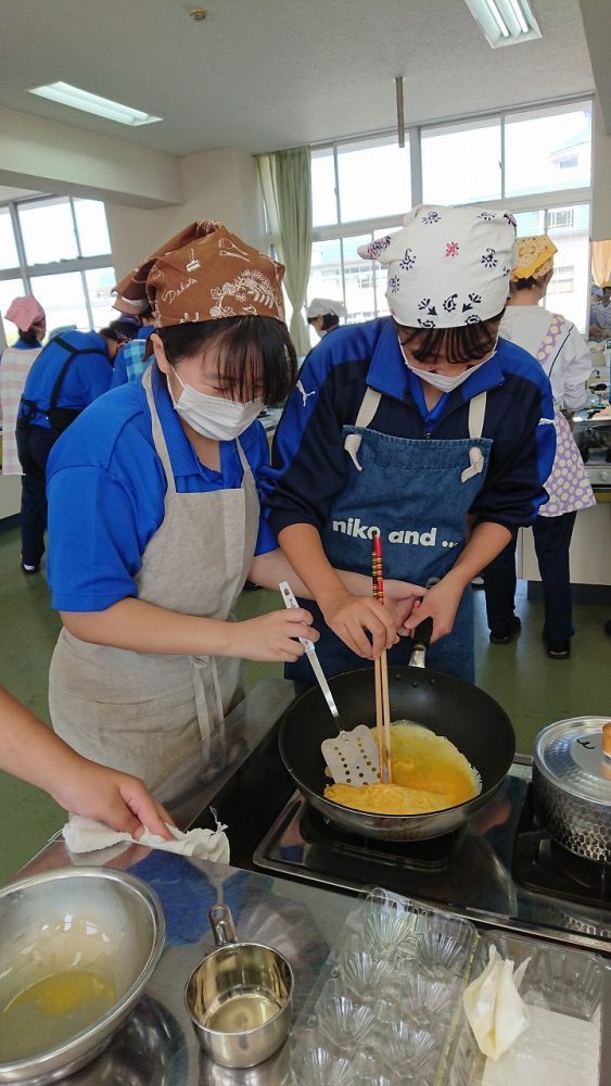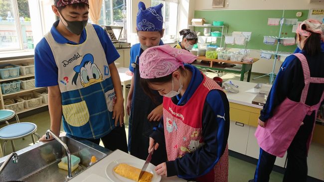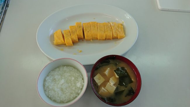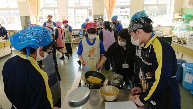 2.3年生を対象に『おかゆ・味噌汁・卵焼き』を作りました。