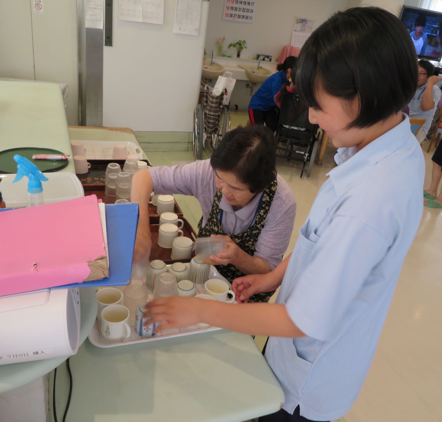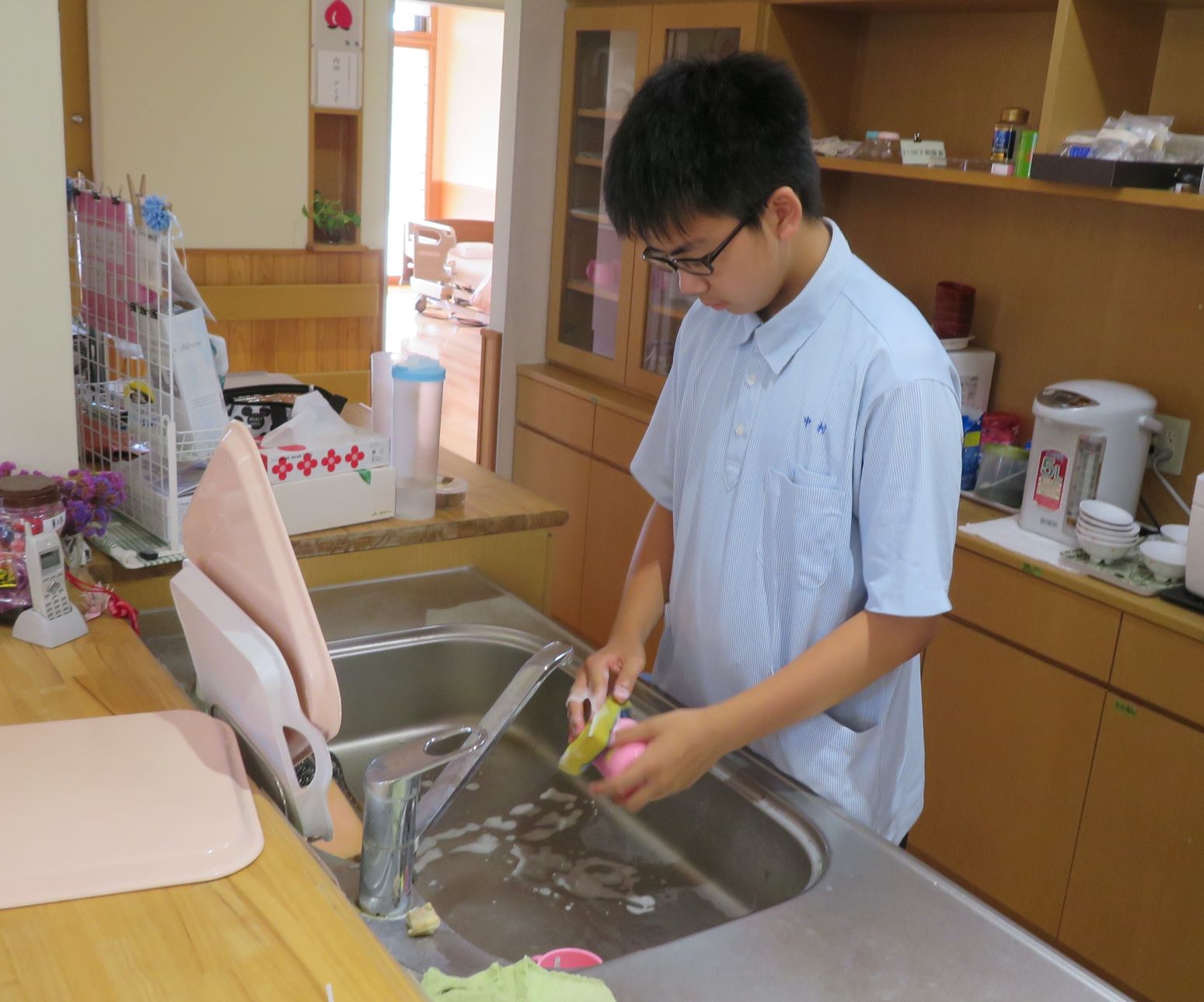 ◀特別養護老人ホーム金峰苑(南さつま市)では、男子生徒が手際よく食器を洗っていました。