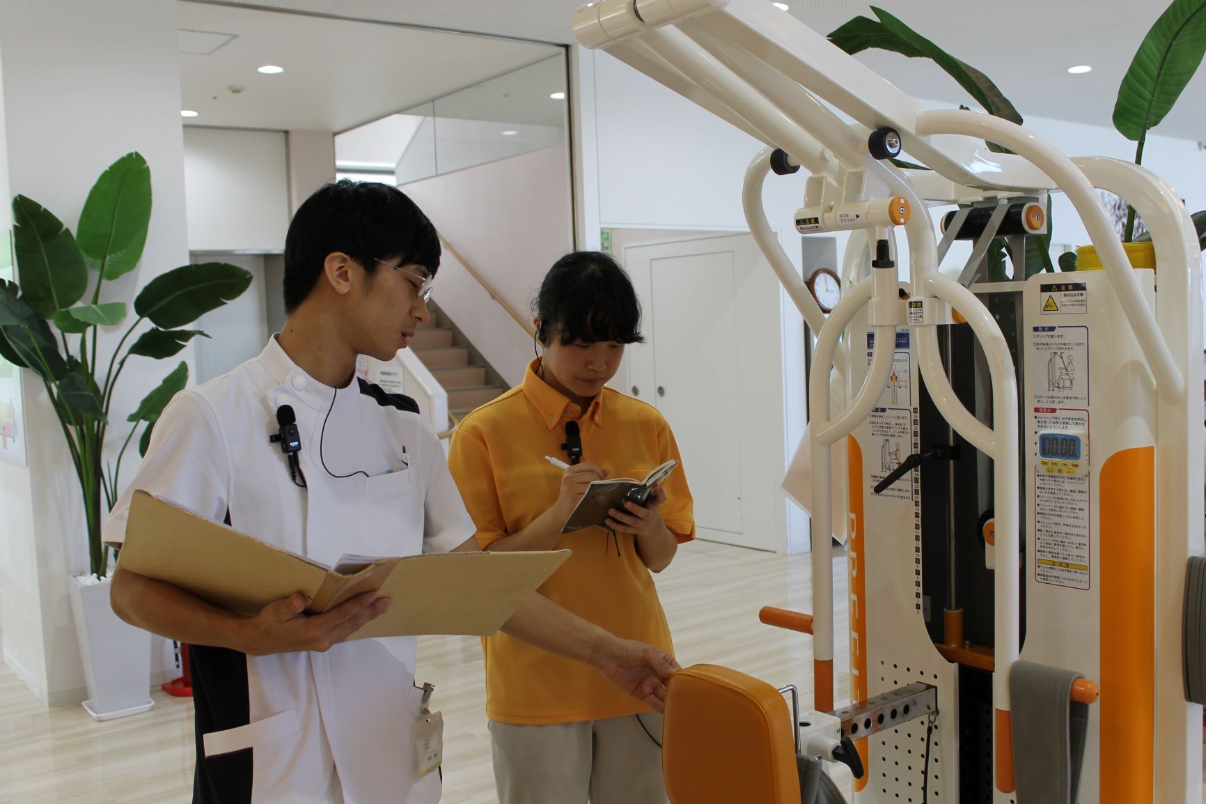 ▲介護老人保健施設ラポール吉井(南さつま市)では、1年生が介護ロボットとともにコミュニケーションを図っていたり、超ベテランの指導を受け水分補給の準備をしていました。