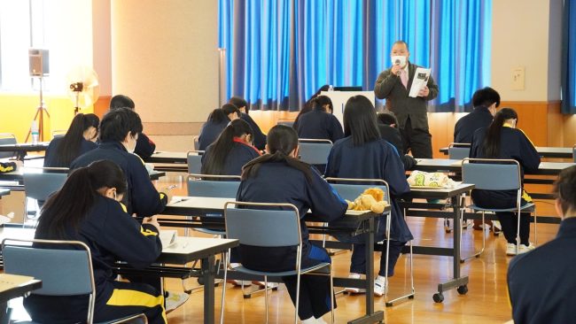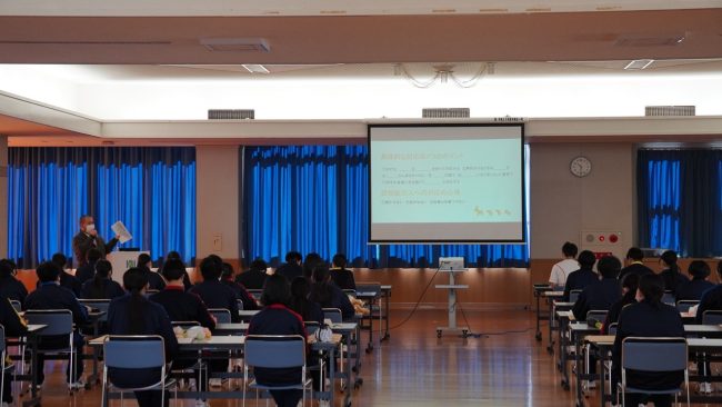 先日(2月10日)、本校武道館にて「認知症サポーター養成講座」が行われ、総合福祉科の1年生~3年生が受講しました。