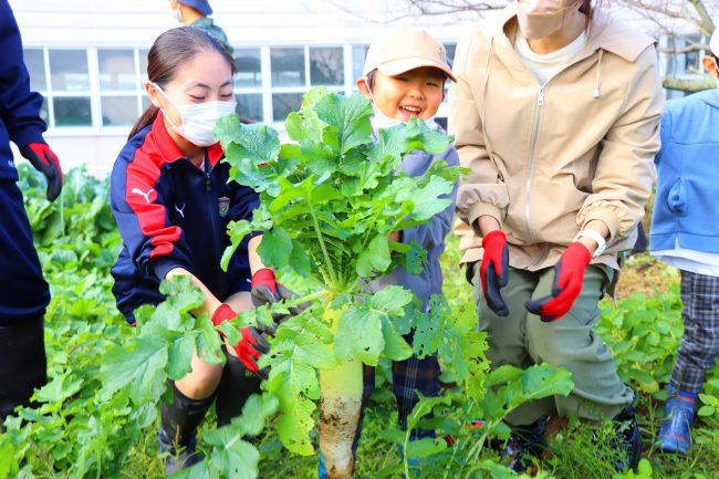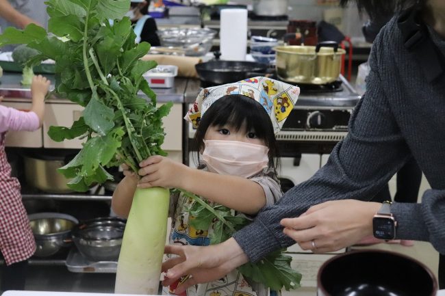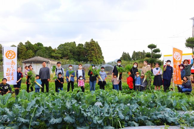 9月中旬に種まきをしていた野菜を、11月23日に南さつま市のイベント「親子クッキング」に参加した子どもたちと収穫いたしました。