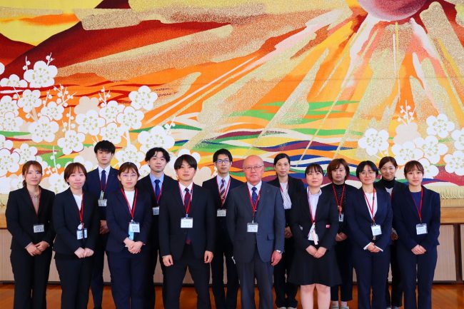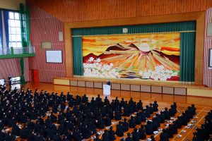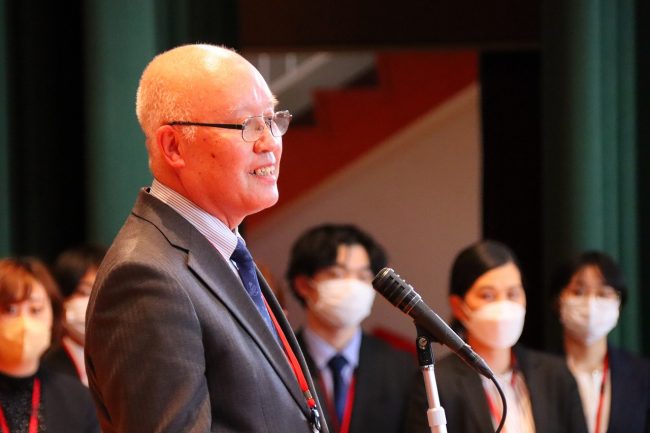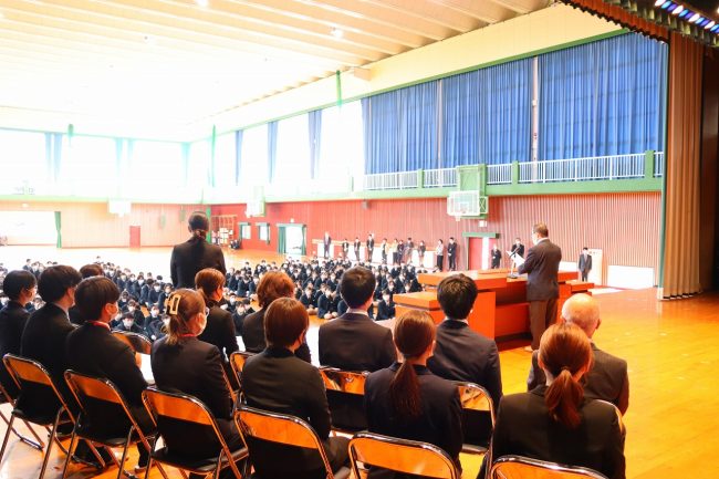 久永先生は挨拶で「学校が好きで幸せな教員生活でした。この学校に通う皆さんは、大きな夢を持って入学した方ばかりですよね。そんな皆さんの元気をもらうことができたので、私も元気に教員の仕事を続けてくることができました。これからも大きな夢に向かって頑張ってください」と話しました。