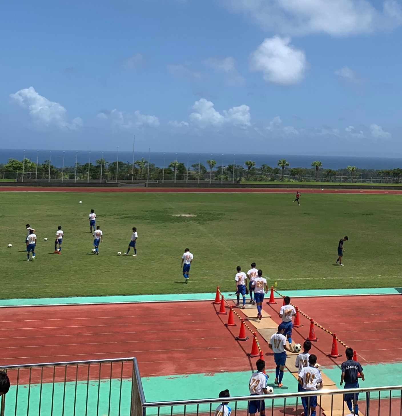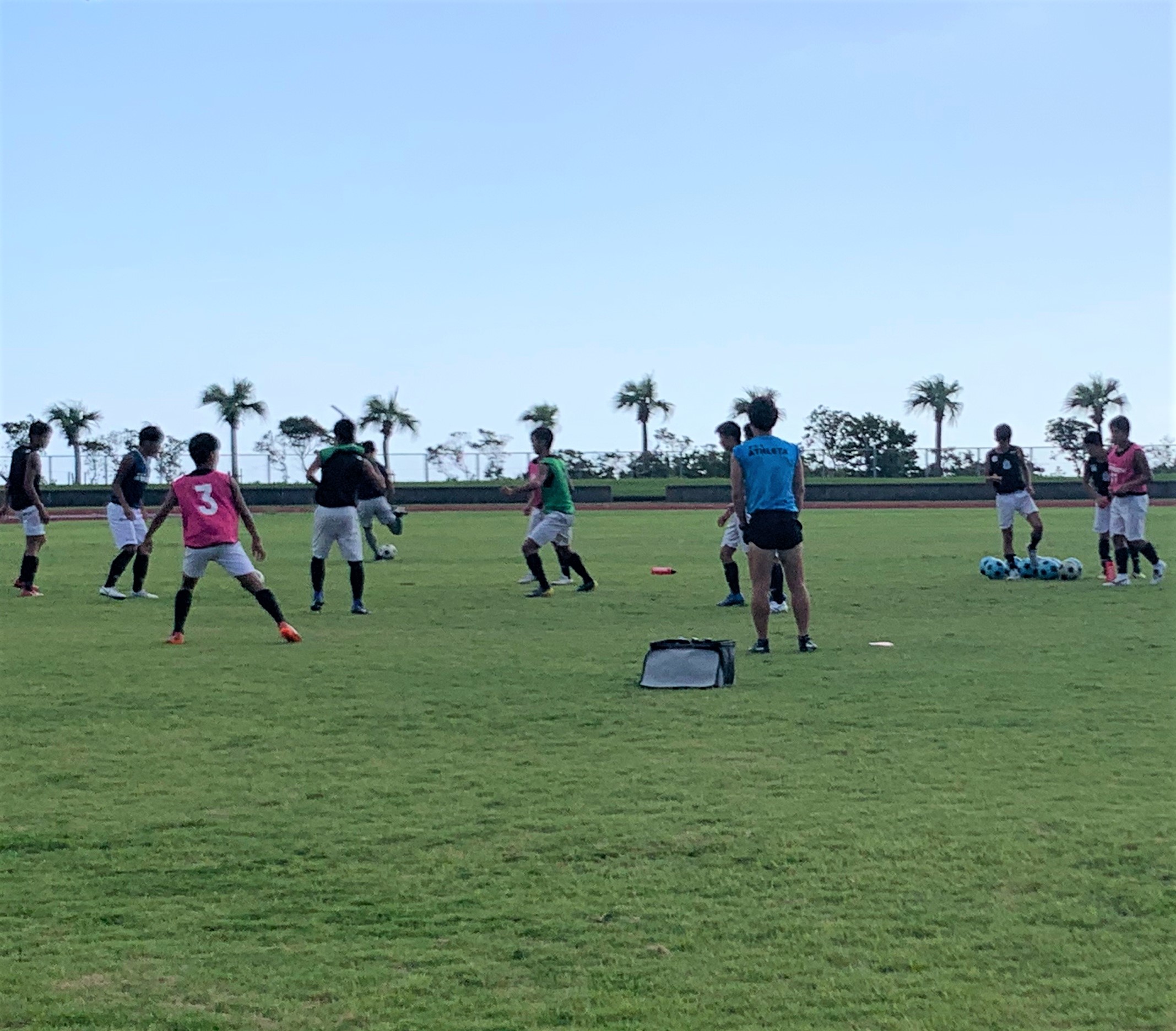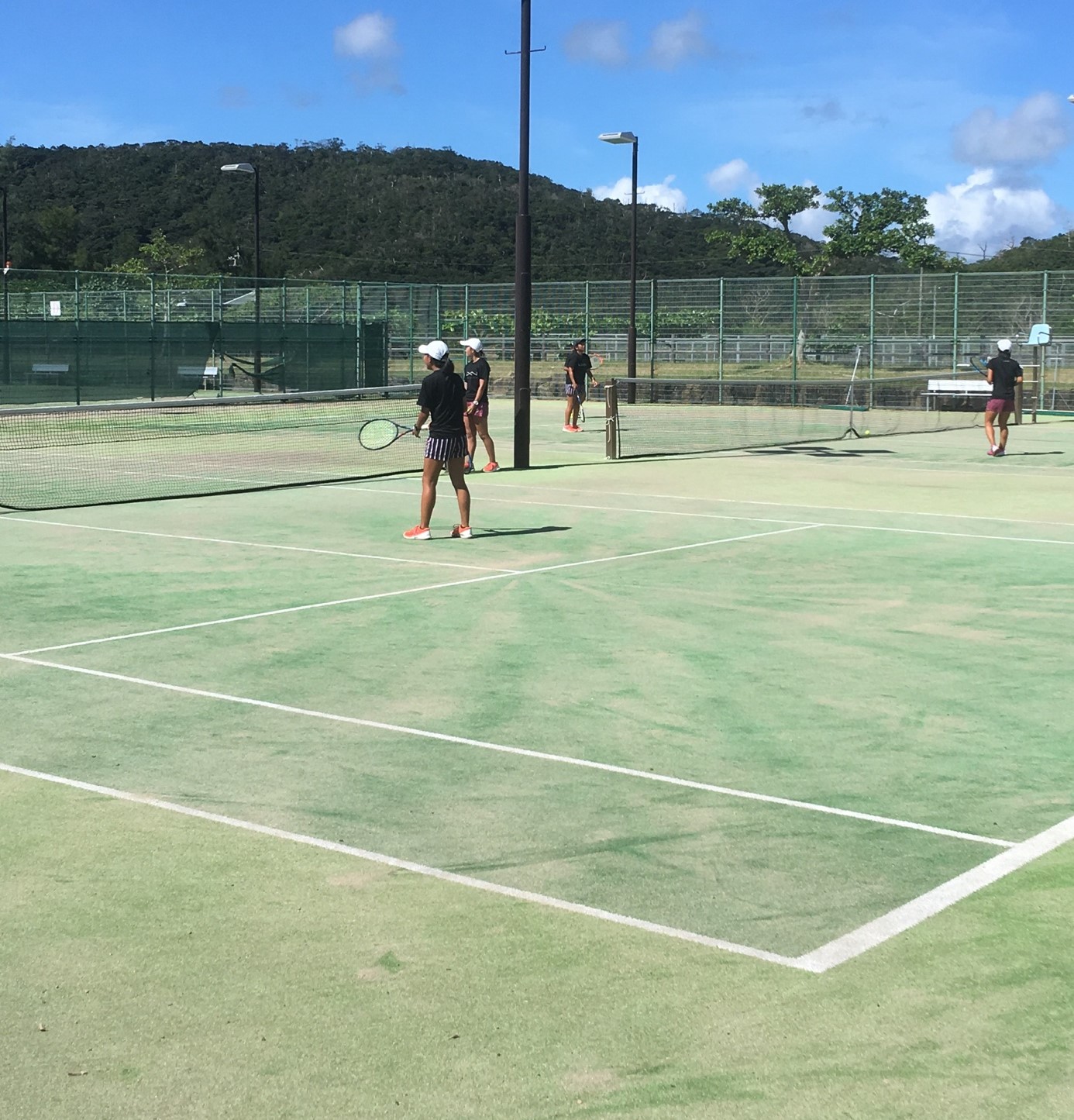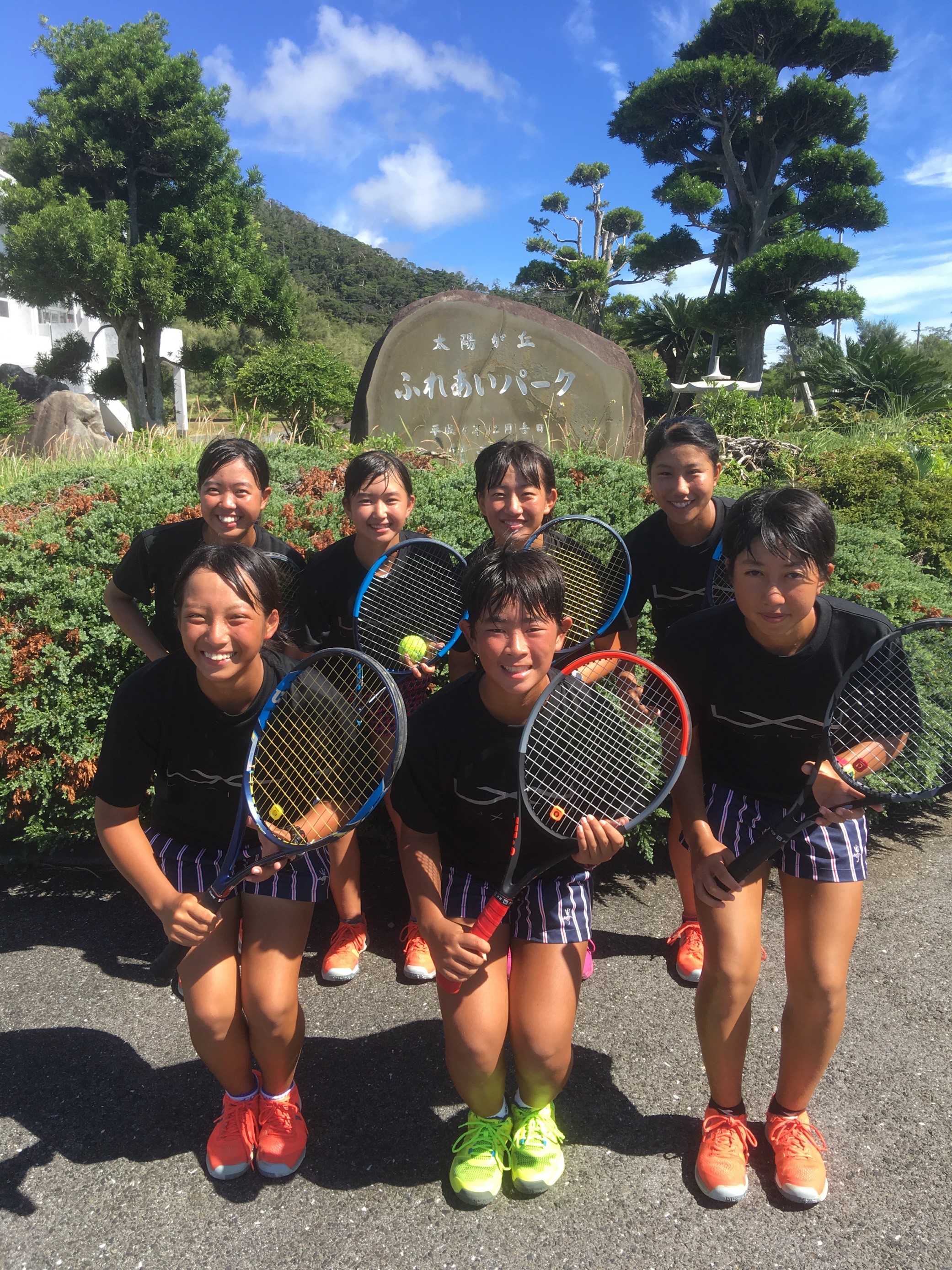 ▼女子テニス部、男子サッカー部はまだまだ灼熱の奄美大島で、新チーム結束力やスタミナ強化を図るべく真っ黒に日焼けしながら活動しています。
