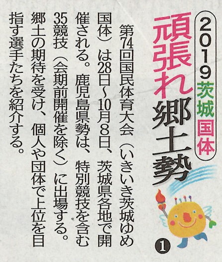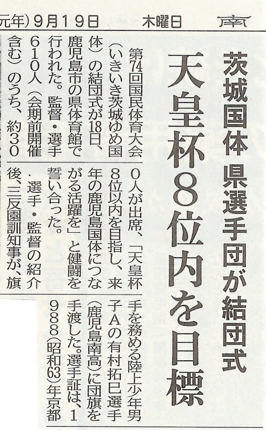 去る9/18(水)に今年度開催の茨城国体県選手団の結団式が鹿児島市で行われました。今回も生徒、職員そして卒業生も選ばれています。来年はいよいよ、地元開催「燃ゆる感動かごしま国体」です。応援よろしくお願いします。