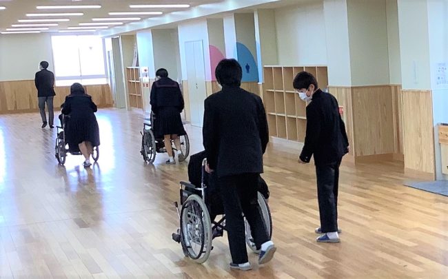 本日は、本校の看護学科の職員が南さつま市立金峰中学校へ訪問して、中学2年生40名を対象に福祉・看護出前体験学習をしました。