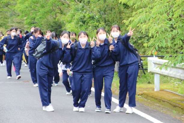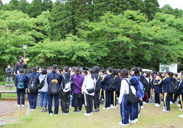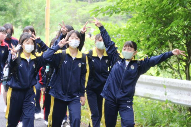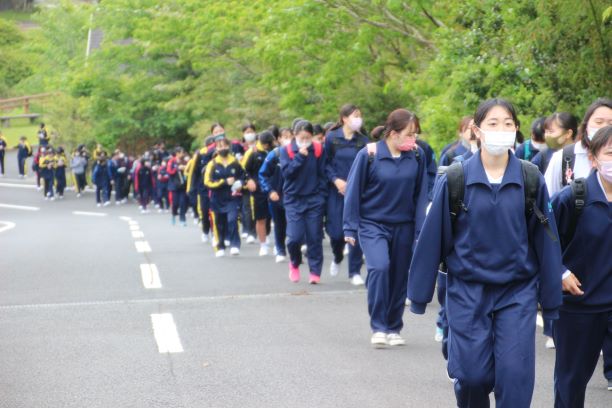 約170名の生徒たちが参加し、バス4台で金峰山まで移動しました。