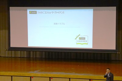 講師の先生にSMBCコンシューマーファイナンス(株)、(株)三井住友銀行鹿児島支店の児玉支店長をお招きし、金融トラブルについてご講話を頂きました。