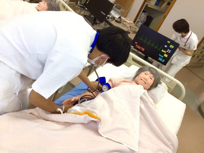 本校の看護学科は高機能シミュレーション人体モデルを今年度から導入し、校内実習でフル活用しています。