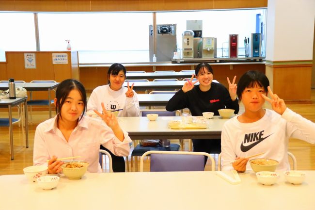 中には半分食べてから、キムチやチーズをのせて自己流にアレンジして、楽しむ生徒もいました。