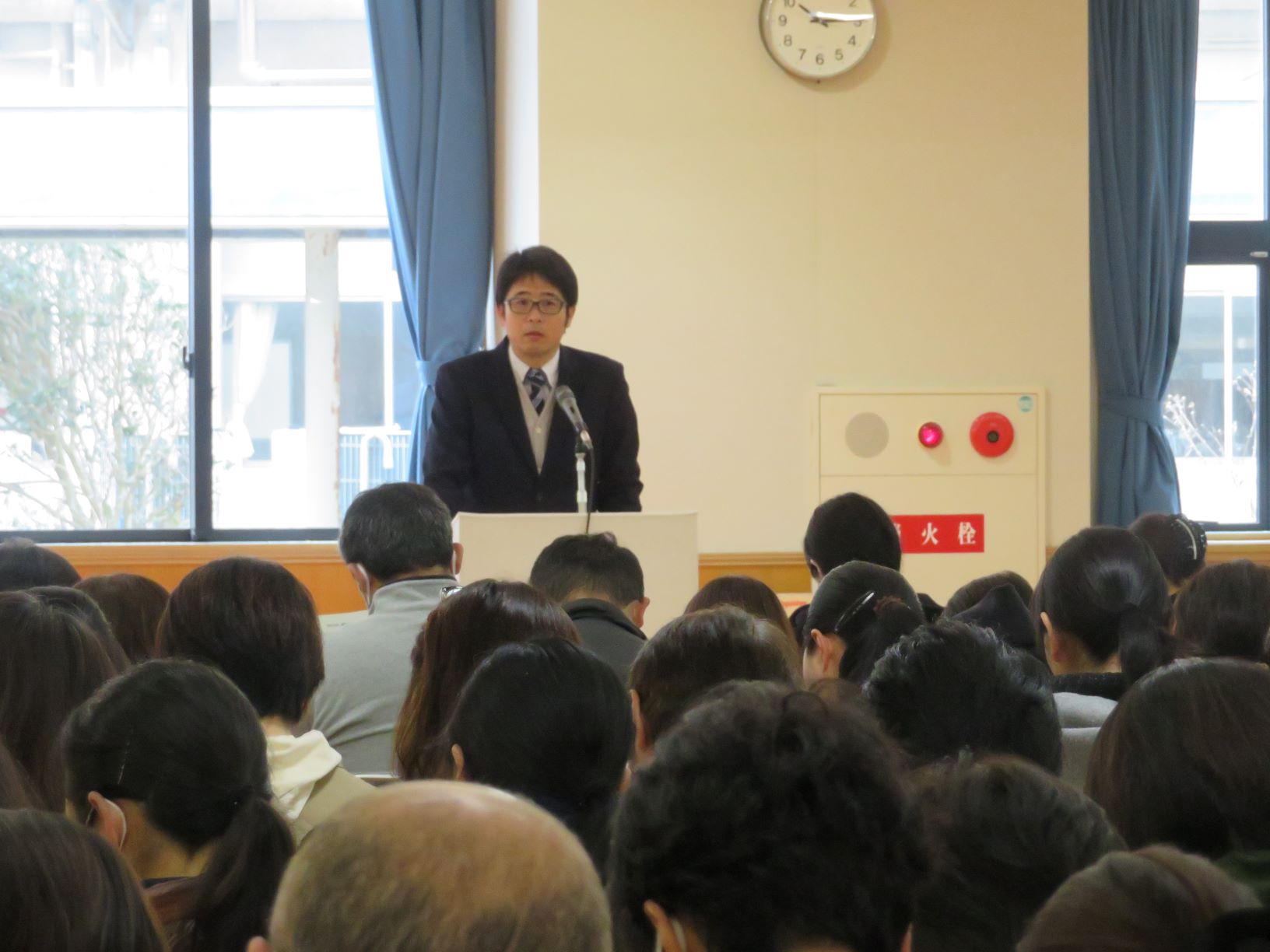 ▼3学年PTAで挨拶する大塚 幸寛PTA会長 ▼総合福祉科の保護者の方々には国家試験前の諸注意