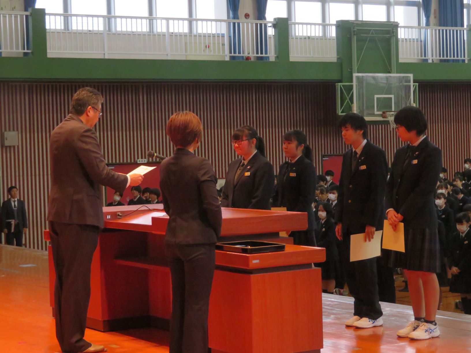 ▼校長から新任職員紹介 ▼ビジネス文書検定の表彰を受けたメディカルシステム科生