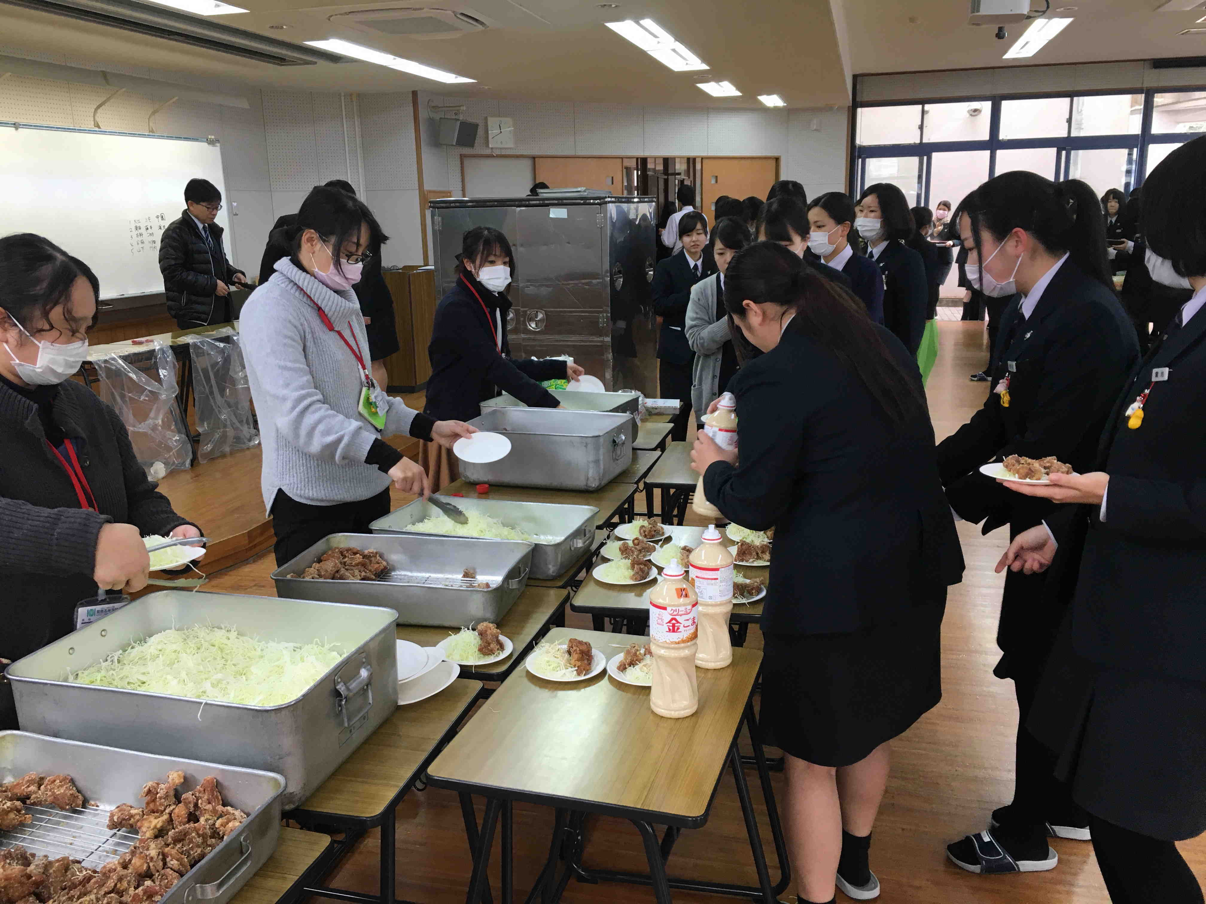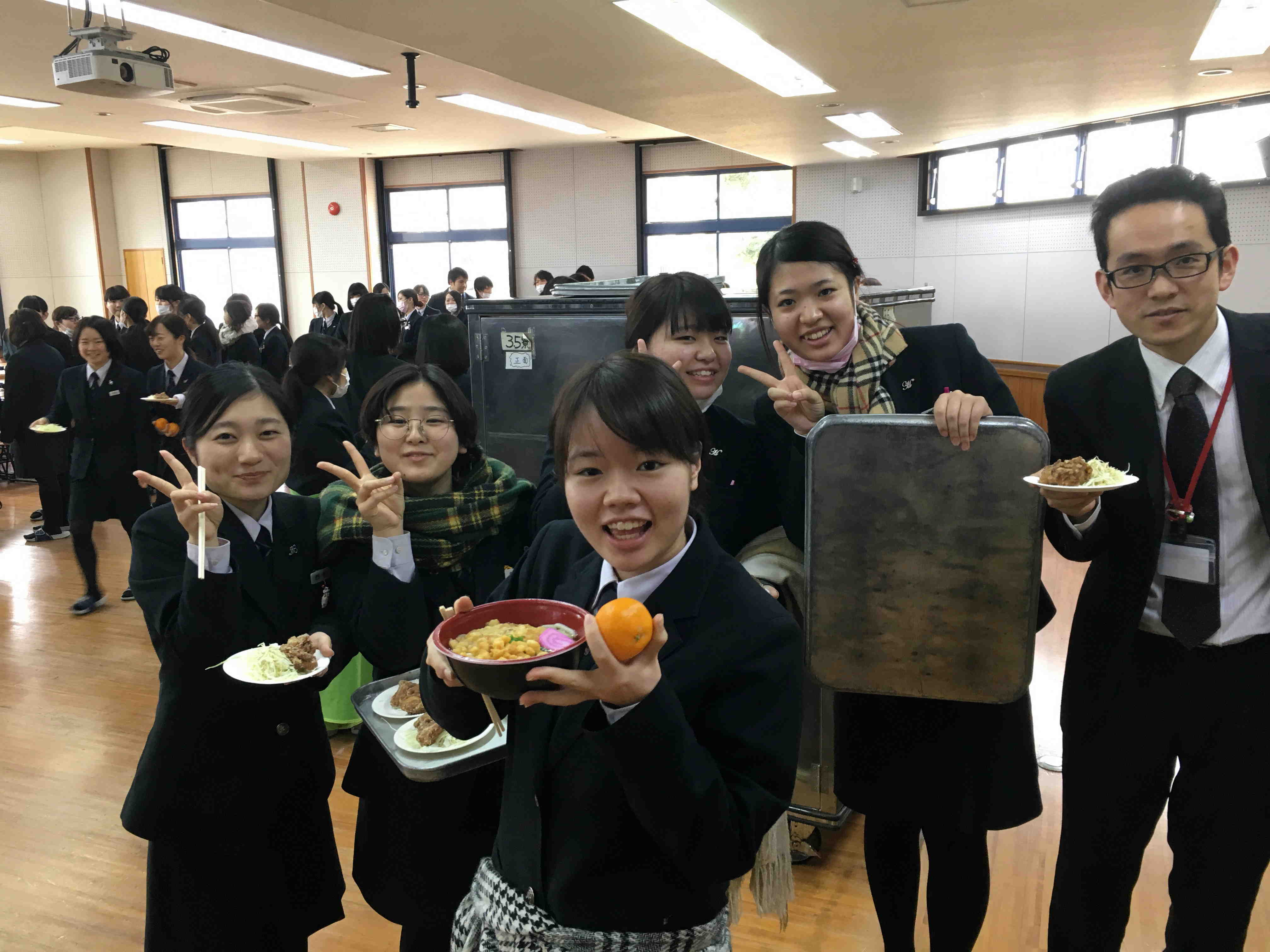 また、今日は昼食時、理事長より専門課程2年生に激励うどんがふるまわれました。
