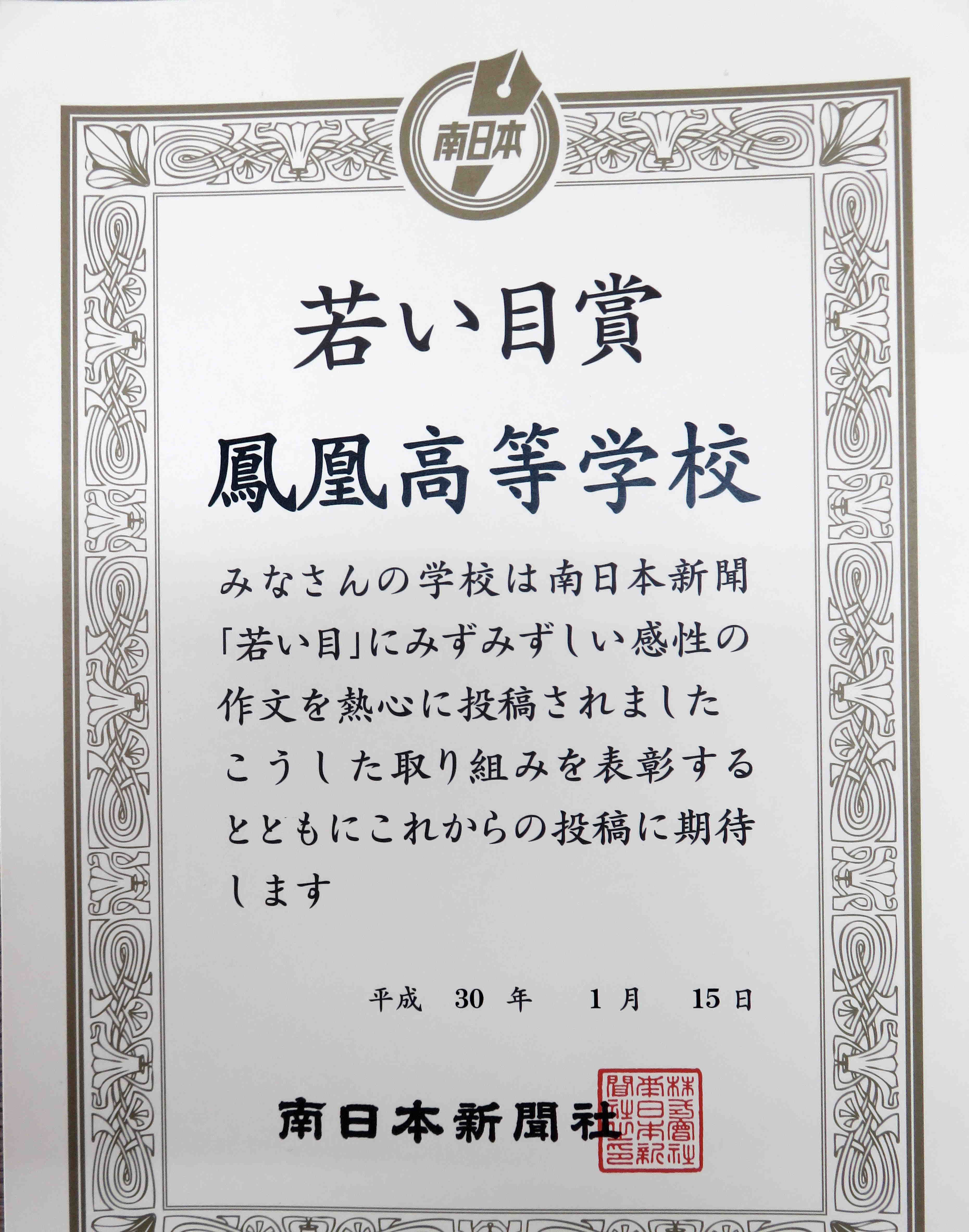 今日は南日本新聞の支局長様から賞状をいただきました。