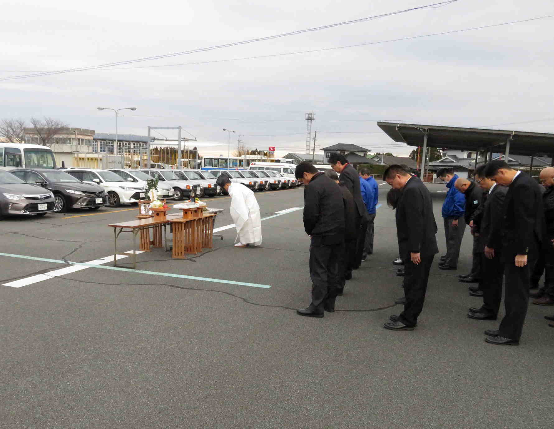 本日の仕事始めにあたり、加世田自動車学校で「交通安全祈願祭」を行いました。