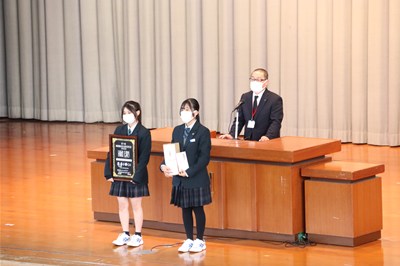 始業式後に、書道部の表彰式が行われました。