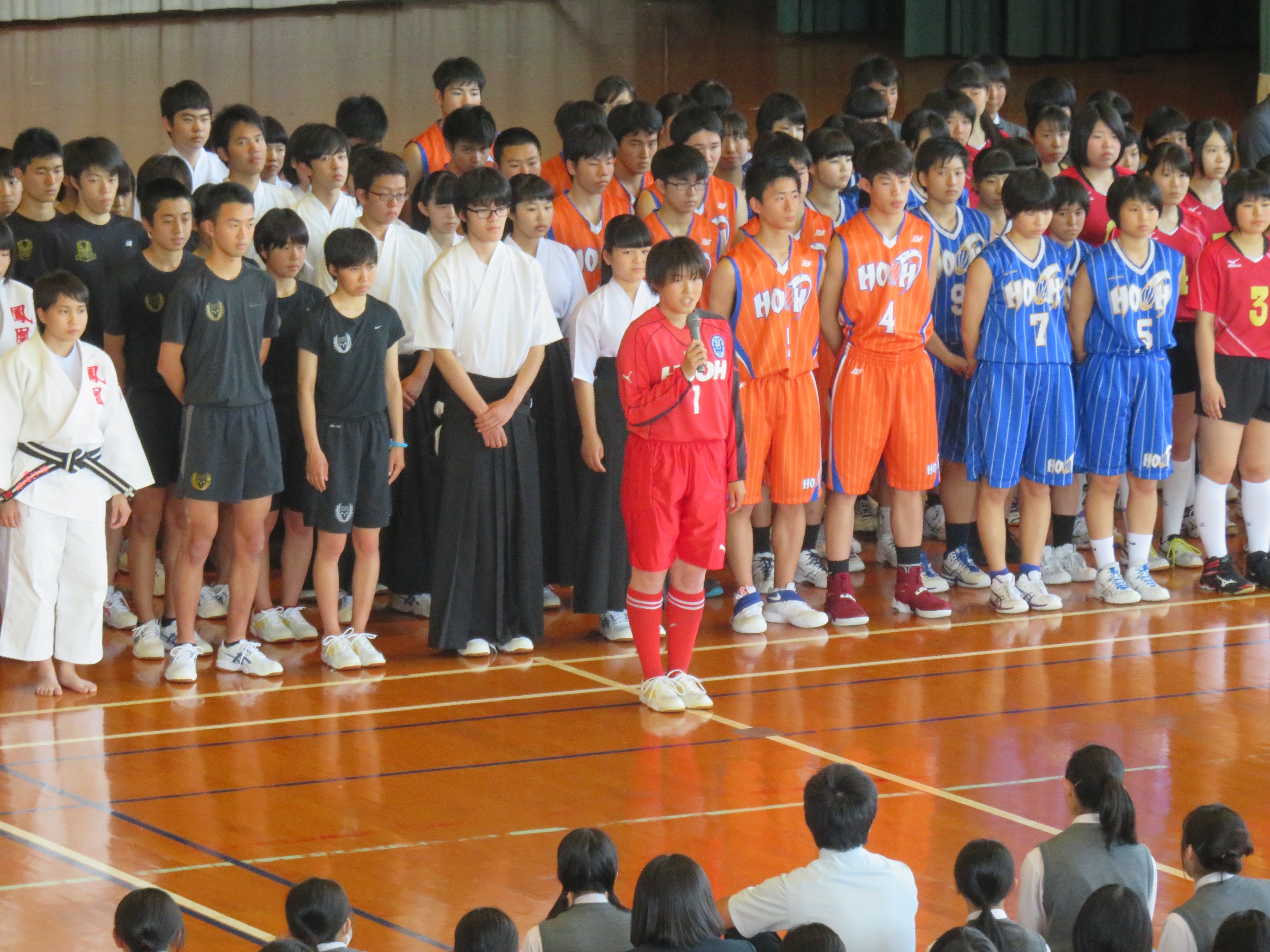 選手を代表して女子サッカー部主将の秦 久瑠実さんが決意を表明しました。