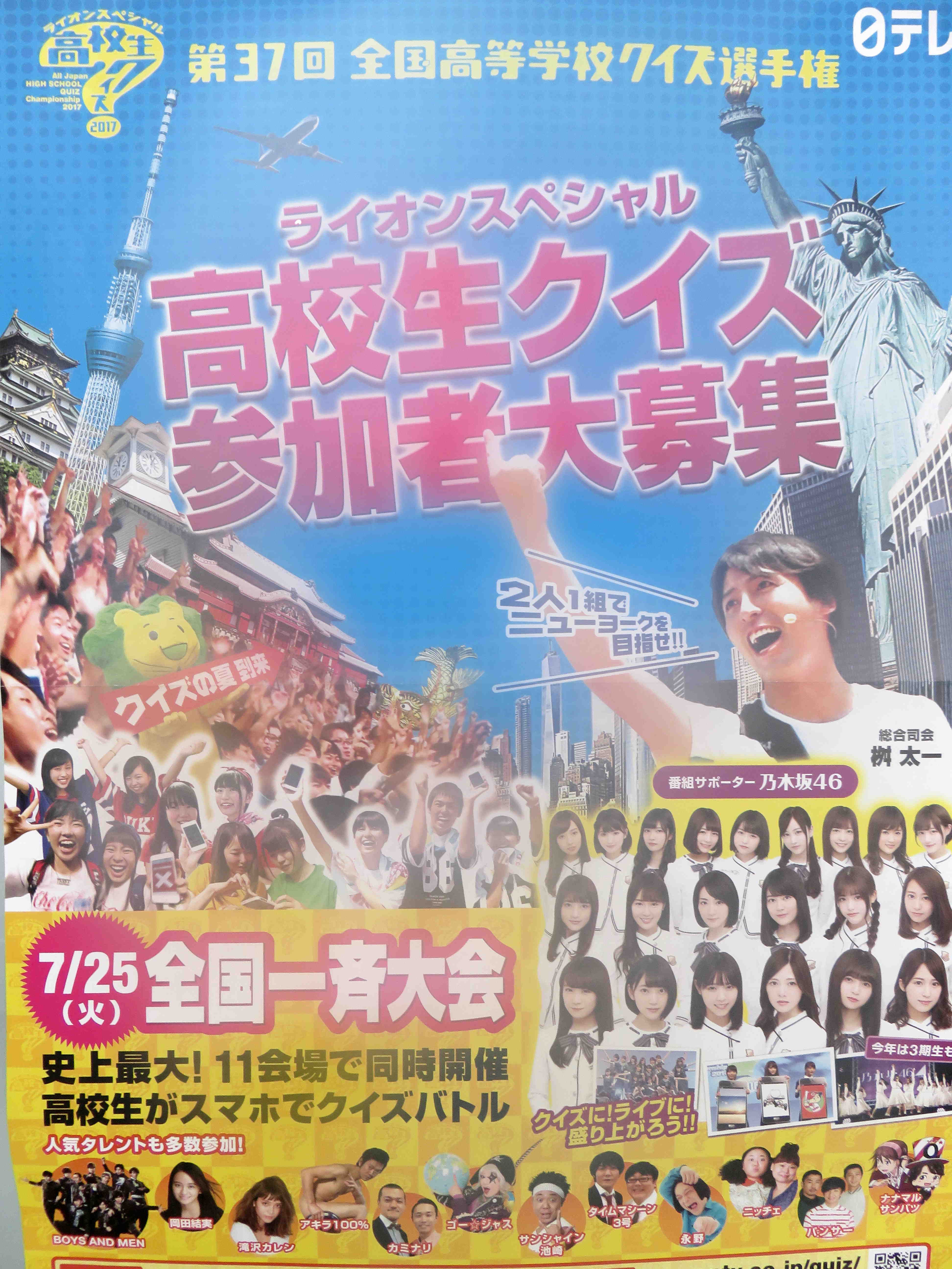 今年も本校生徒が「第37回全国高等学校クイズ選手権」に挑戦します。