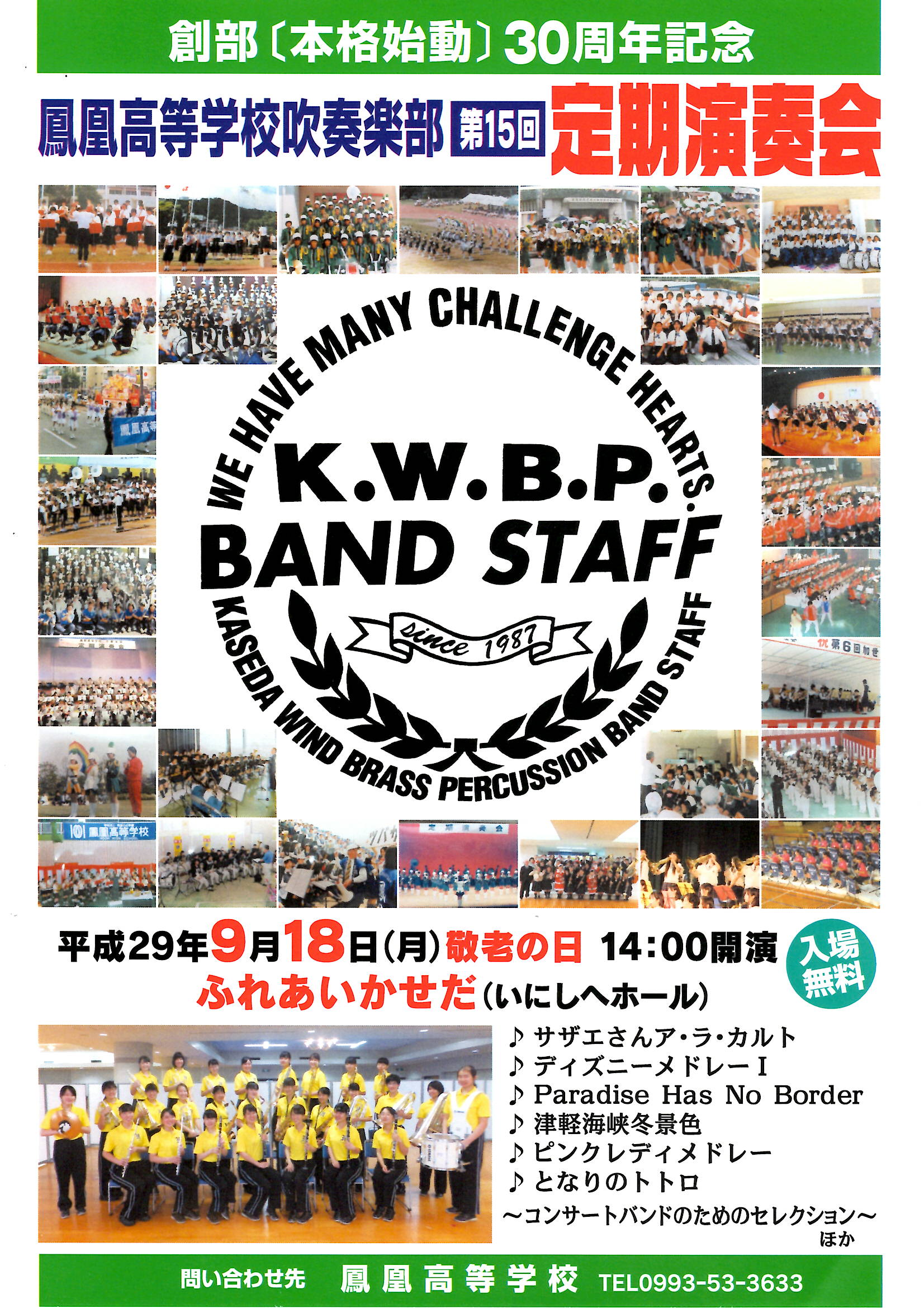 8/31(木) 9月18日 「創部30周年記念 吹奏楽部定期演奏会」のごあんない&笑ってごらん593号