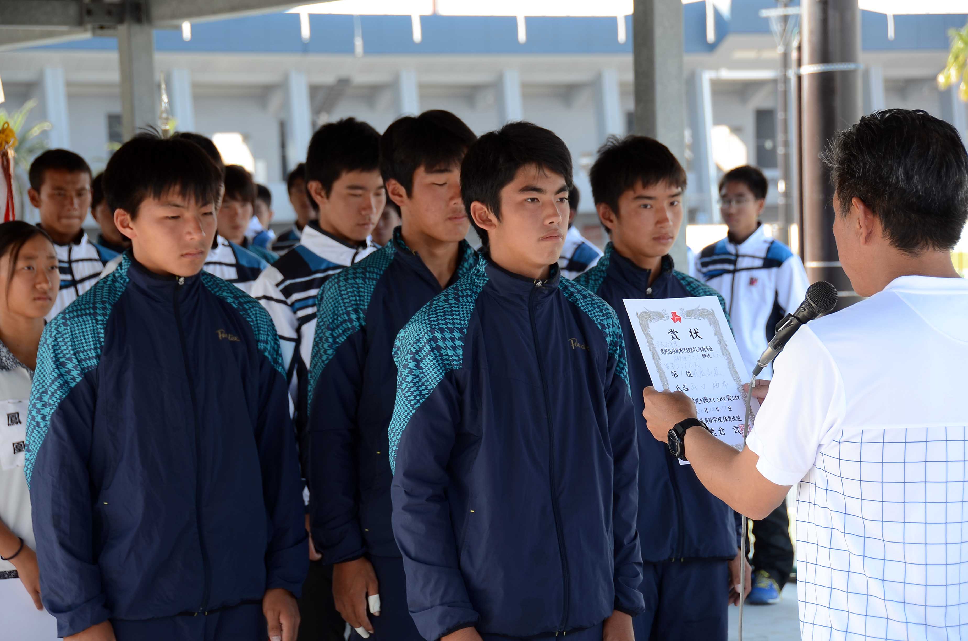 テニスの県新人戦は今日が最終日でした。個人戦シングルスの準決勝・決勝とダブルスの決勝が行われました。男子シングルスはベスト4すべてを鳳凰勢が独占し、1年生の山口柚希君が優勝しました。ダブルス(森田・山口ペア)は決勝で鹿実に敗れ準優勝でした。女子はシングルス優勝が2年生の空久保果音さん、ダブルス優勝が中村香里・佐藤唯ペアでした。