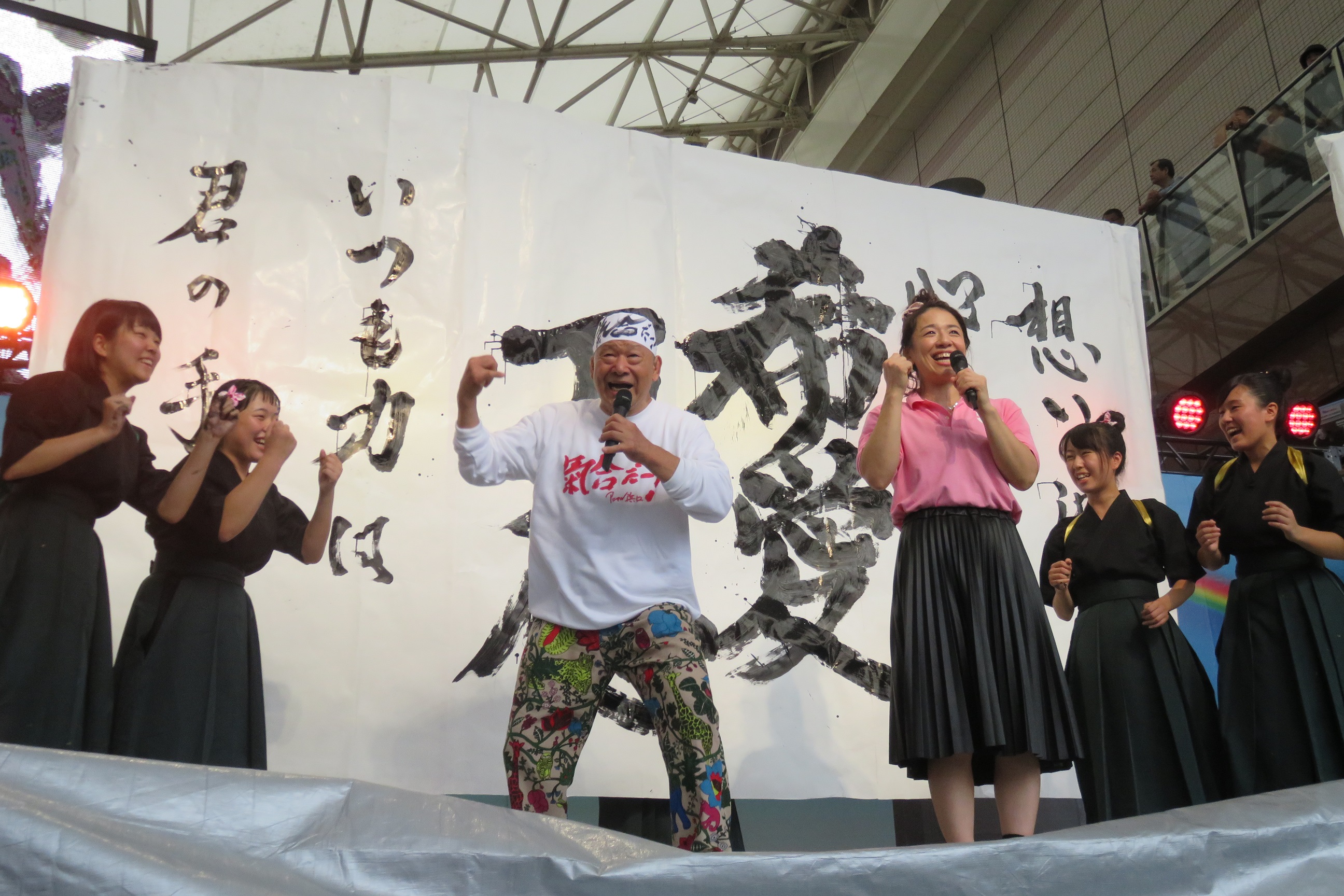 書道パフォーマンスで数々の舞台の経験を持つ書道部は、この日も圧巻のパフォーマンスで皆さんの夢を応援しました。