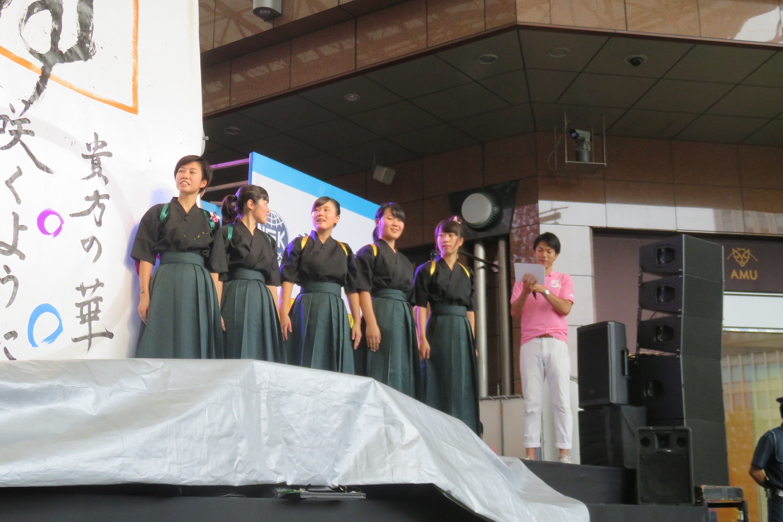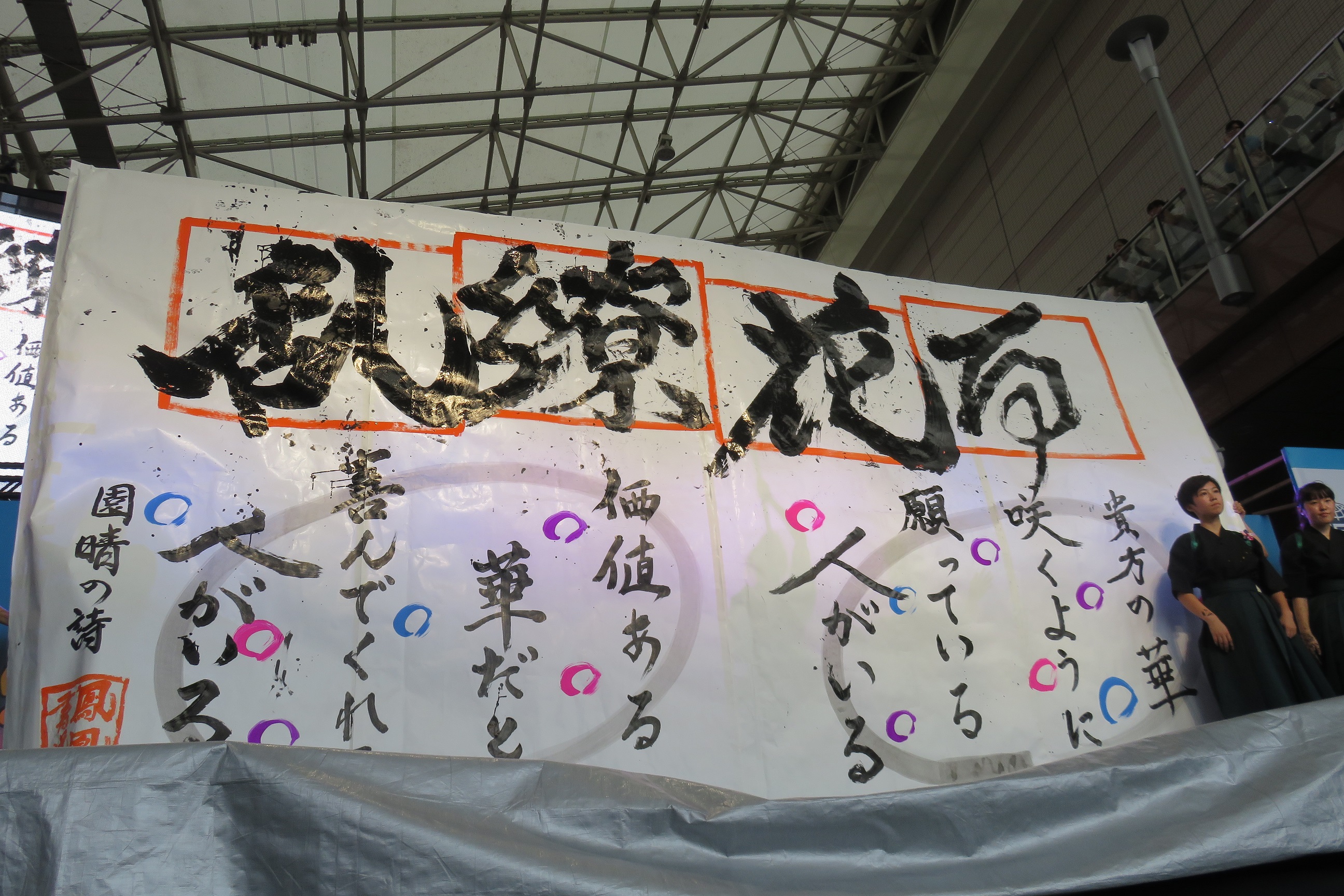 10/8(土)に鹿児島市のアミュ広場で『KKB夢フェスタ』が行われ、本校書道部が出演しました。