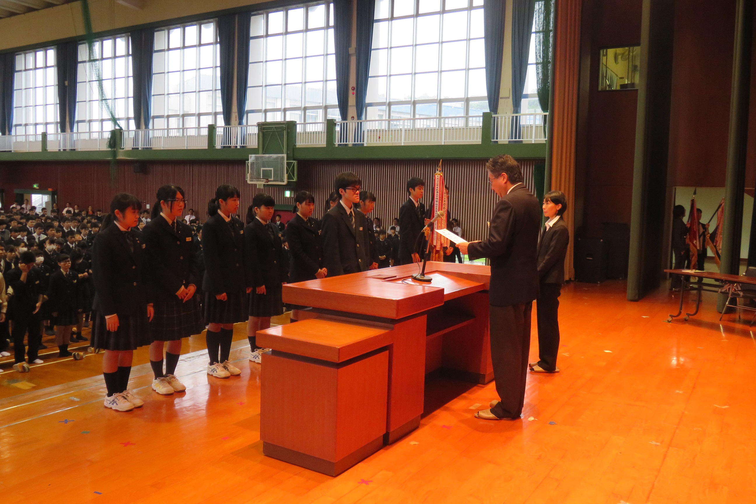 表彰式では、女子バスケットボール部・バドミントン部・弓道部・書道部の表彰も行われました。