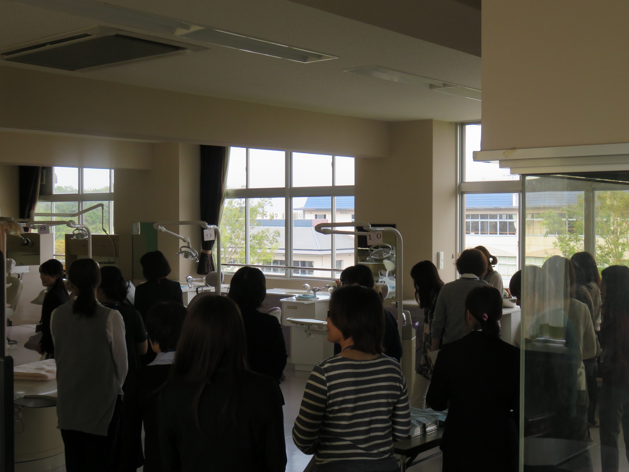 校内見学ではメディカルシステム科の歯科実習施設や福祉実習室を見学され、授業では看護学科生の日常を興味深くご覧いただきました。