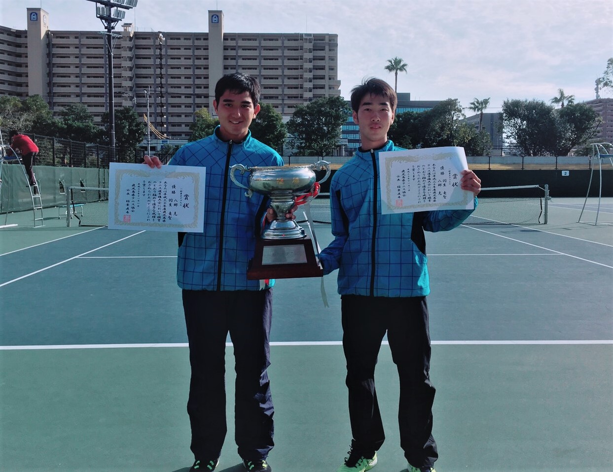 今日はもう一つ嬉しいことがありました。社会人・大学生も参加するテニスの県選手権の男子ダブルスで
