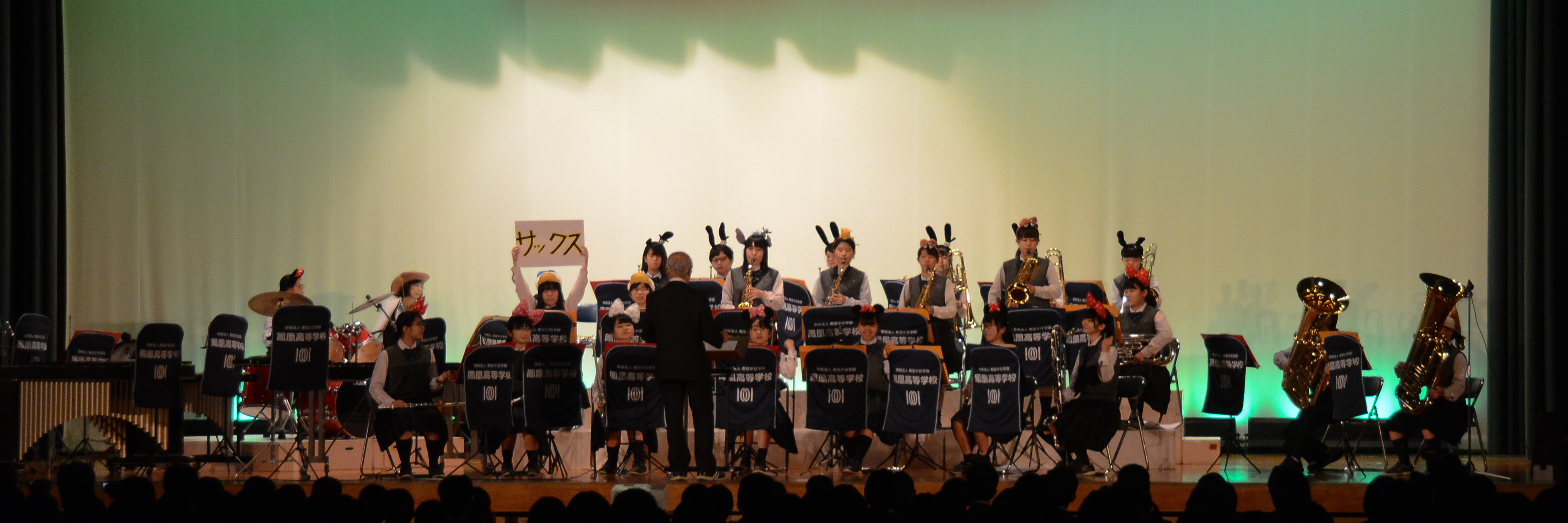 本日は文化祭一日目、ステージの部でした。吹奏楽部・マジック部・合唱部・書道部・体操部など各部活動の発表のほか、ESS同好会の留学体験発表など盛りだくさんの内容で、保護者の方々も多数来ておられました。写真は吹奏楽部の全景です。