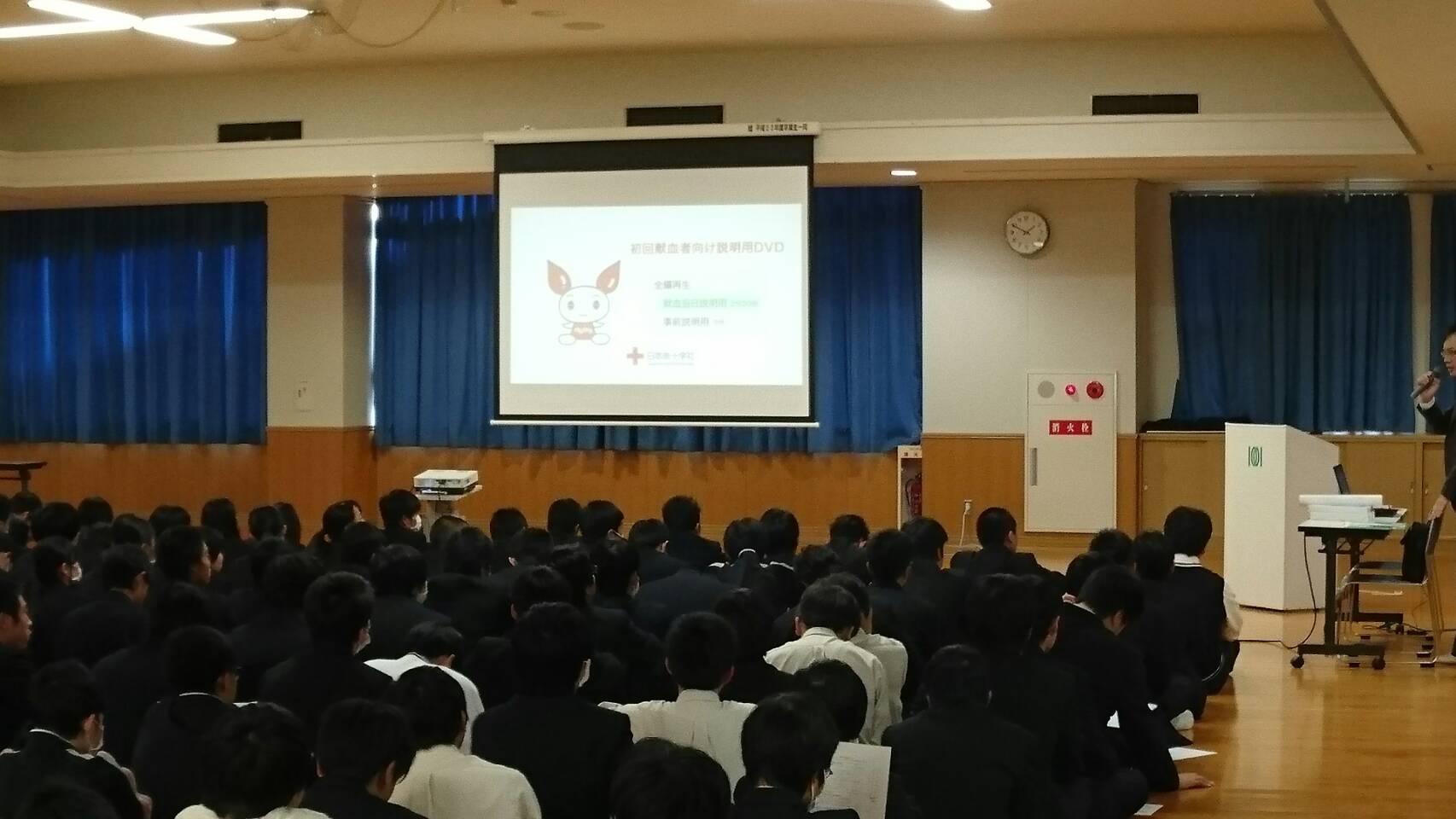 28日のテスト終了後、献血を希望する生徒への説明会が行われました。