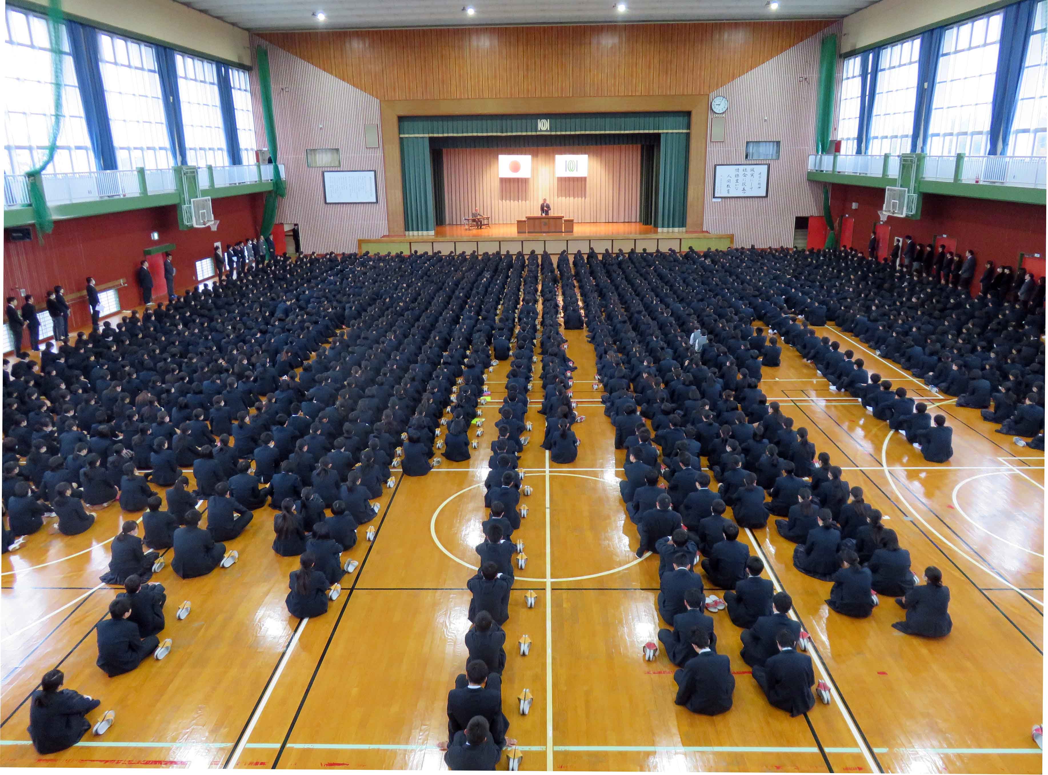 本日から3学期が始まりました。冬休みの間、静まり返っていた学校も、1500名近い生徒たちで一挙に賑わいが戻ってきました。1限目始業式、2限目クラスのホームルームで、3限目から普段通りの授業でした。ホームルームでは3学期の行事も発表しておりますので、保護者の皆さんもご確認ください。