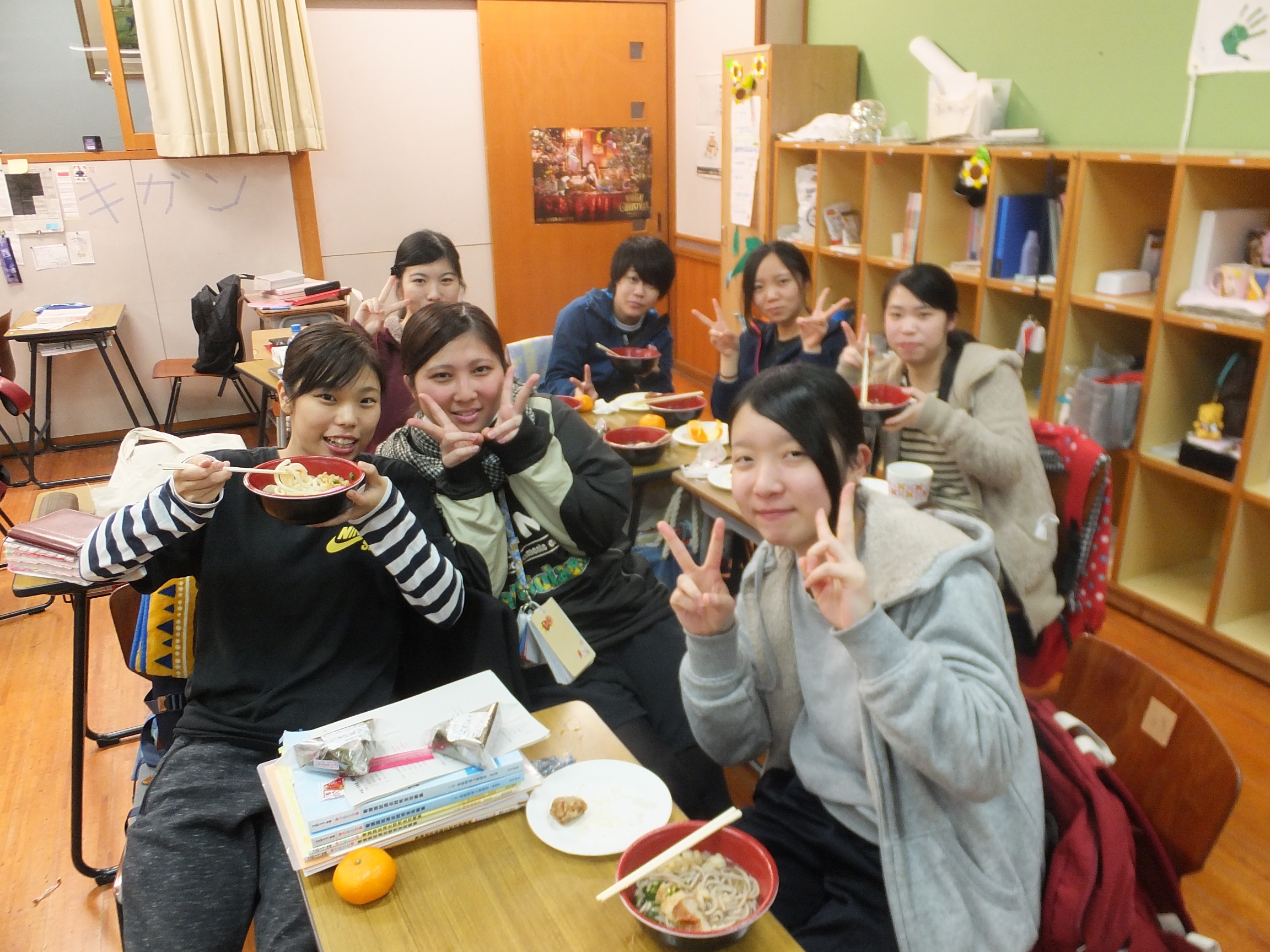 国家試験まで残り1ヶ月となり、昨日、学園の後援会から激励の食事(阿久根商店さんからうどん・そば、給食センターからおにぎり・唐揚げ・サラダ・みかん)が届けられました。