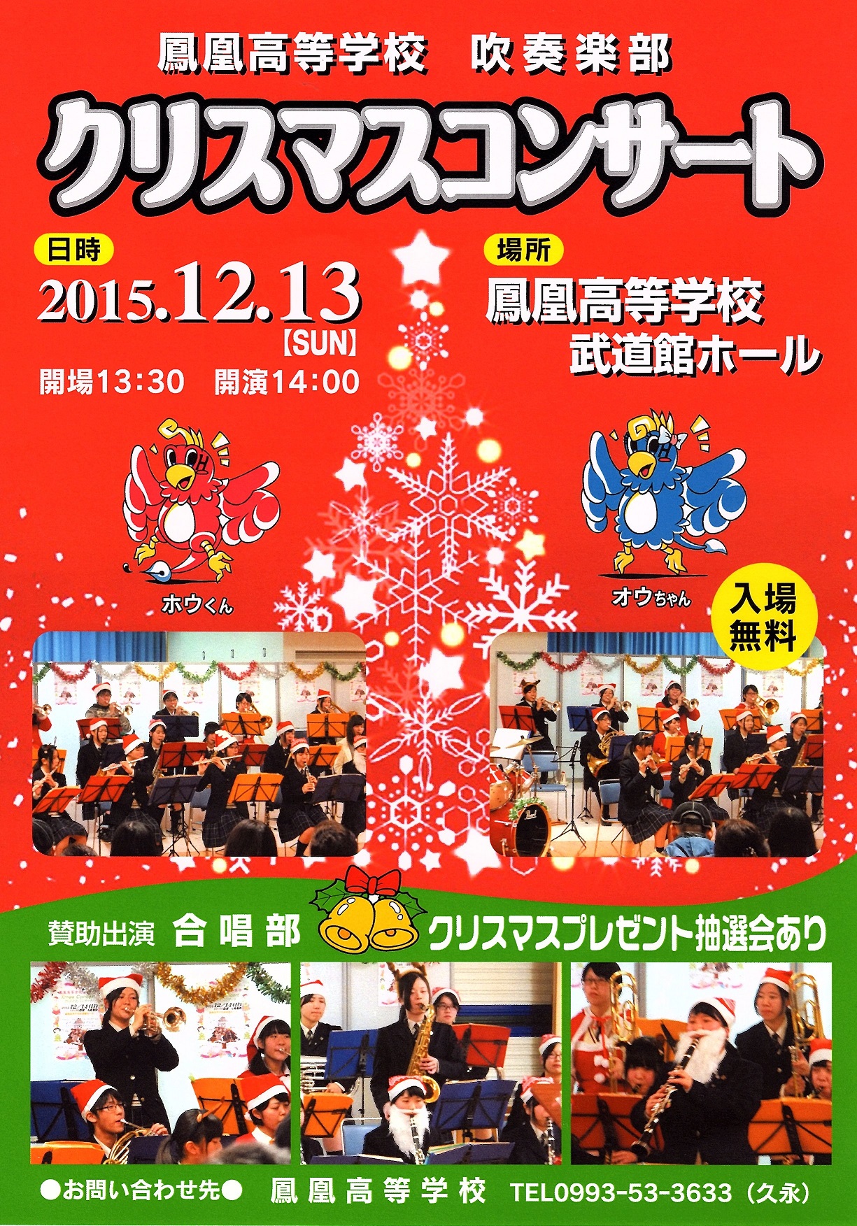 吹奏楽部のクリスマスコンサートの案内です。