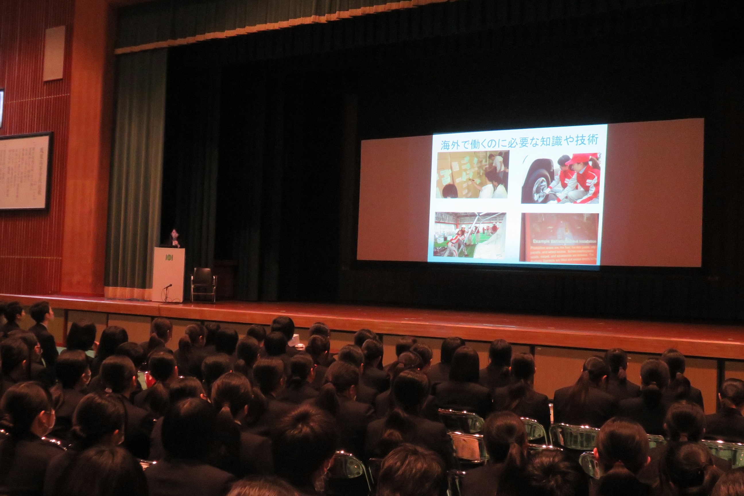 『看護師の無限大の可能性』という演題でご自身の海外での医療活動を交え、看護師を目指す生徒たちへエールを送っていただきました。