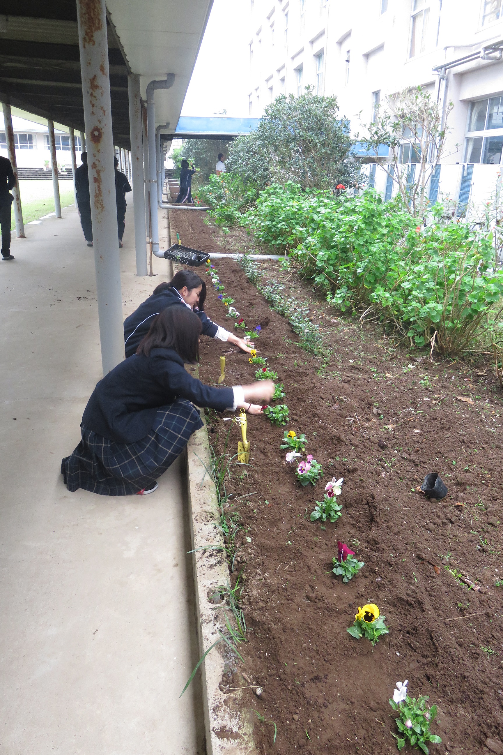 日頃はなかなか手が届かない床磨きや、花壇の手入れにも取り組みました。