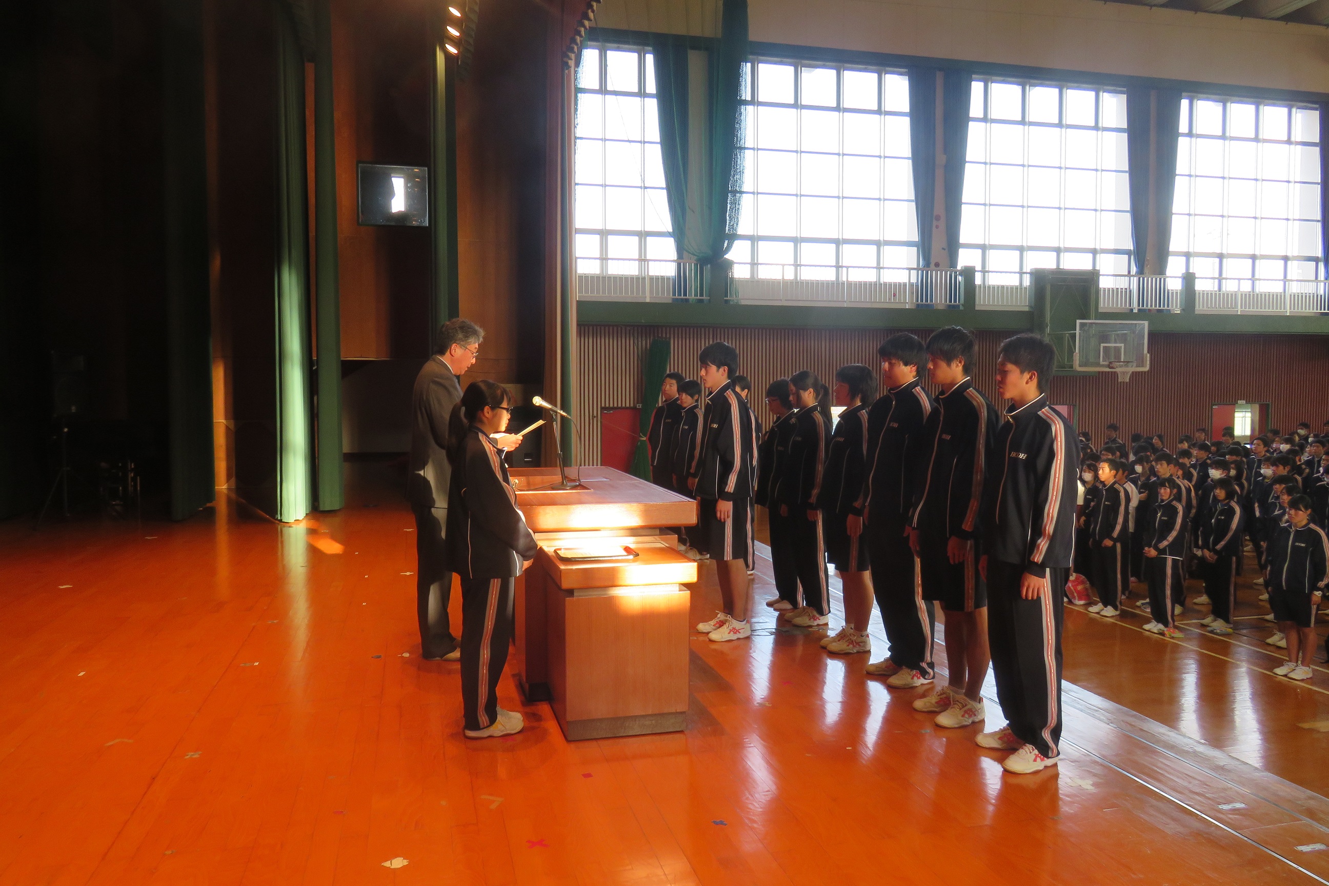 明日は本校学期末恒例の「挨拶コンクール」が実施され、その後終業式となります。