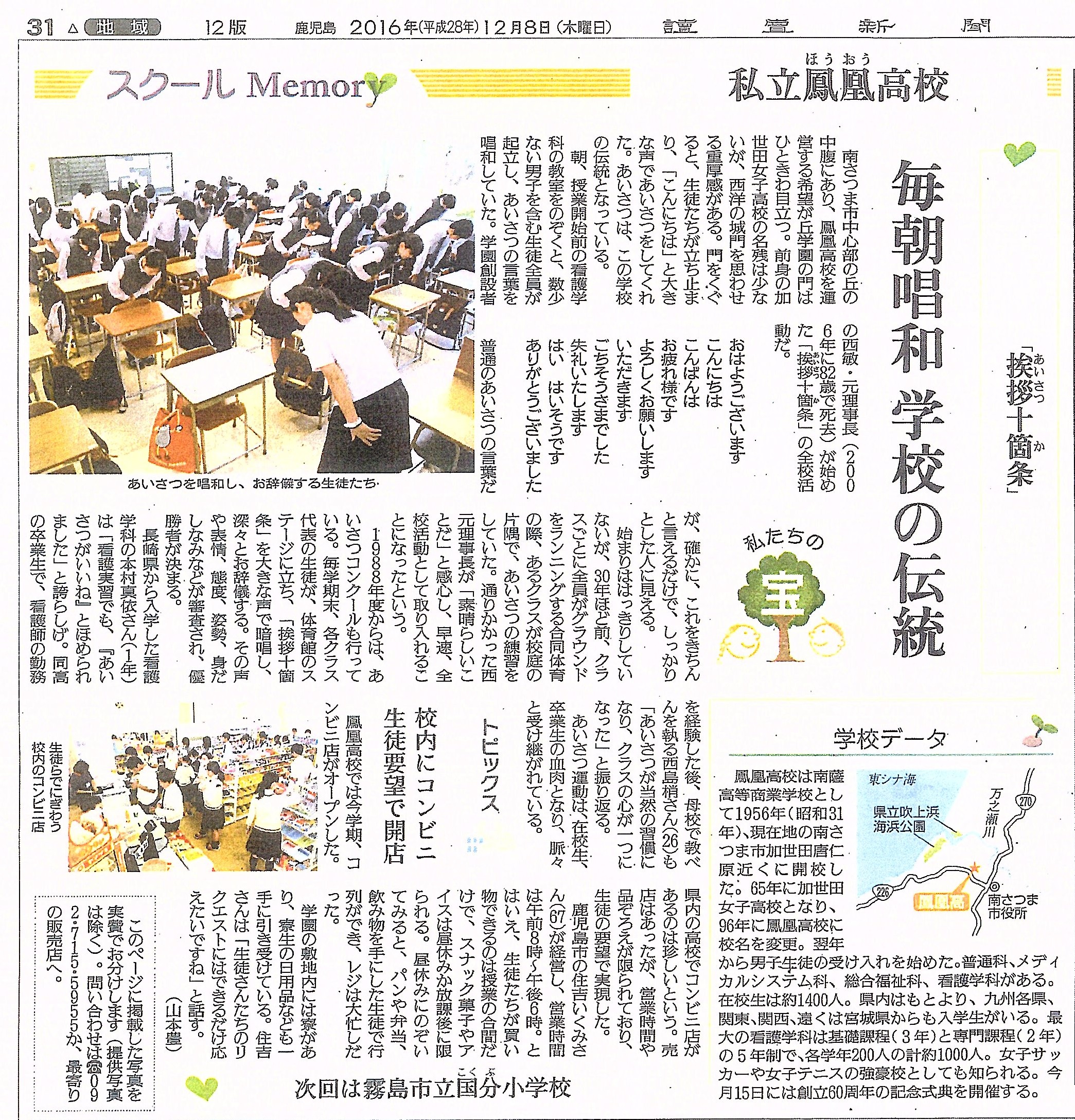 先日は新聞にも紹介されたように、挨拶は本校の伝統です。