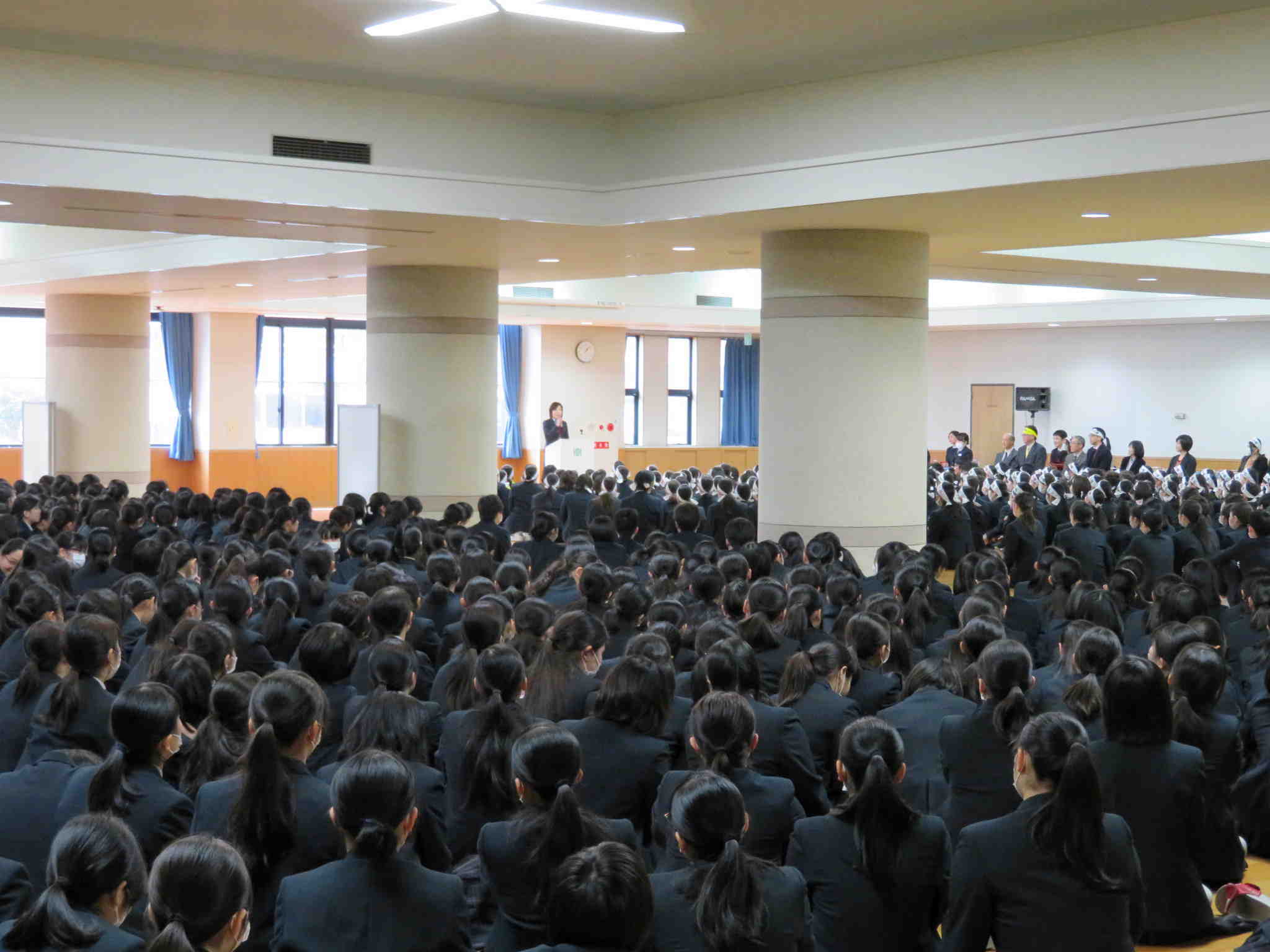 まずは理事長・校長・看護学科基礎課程 市成教諭による激励のあと、