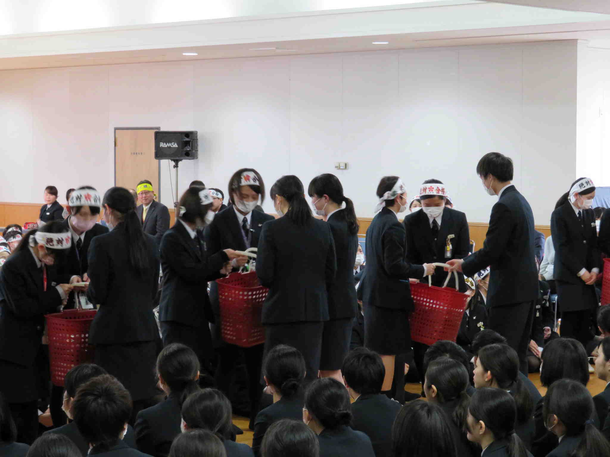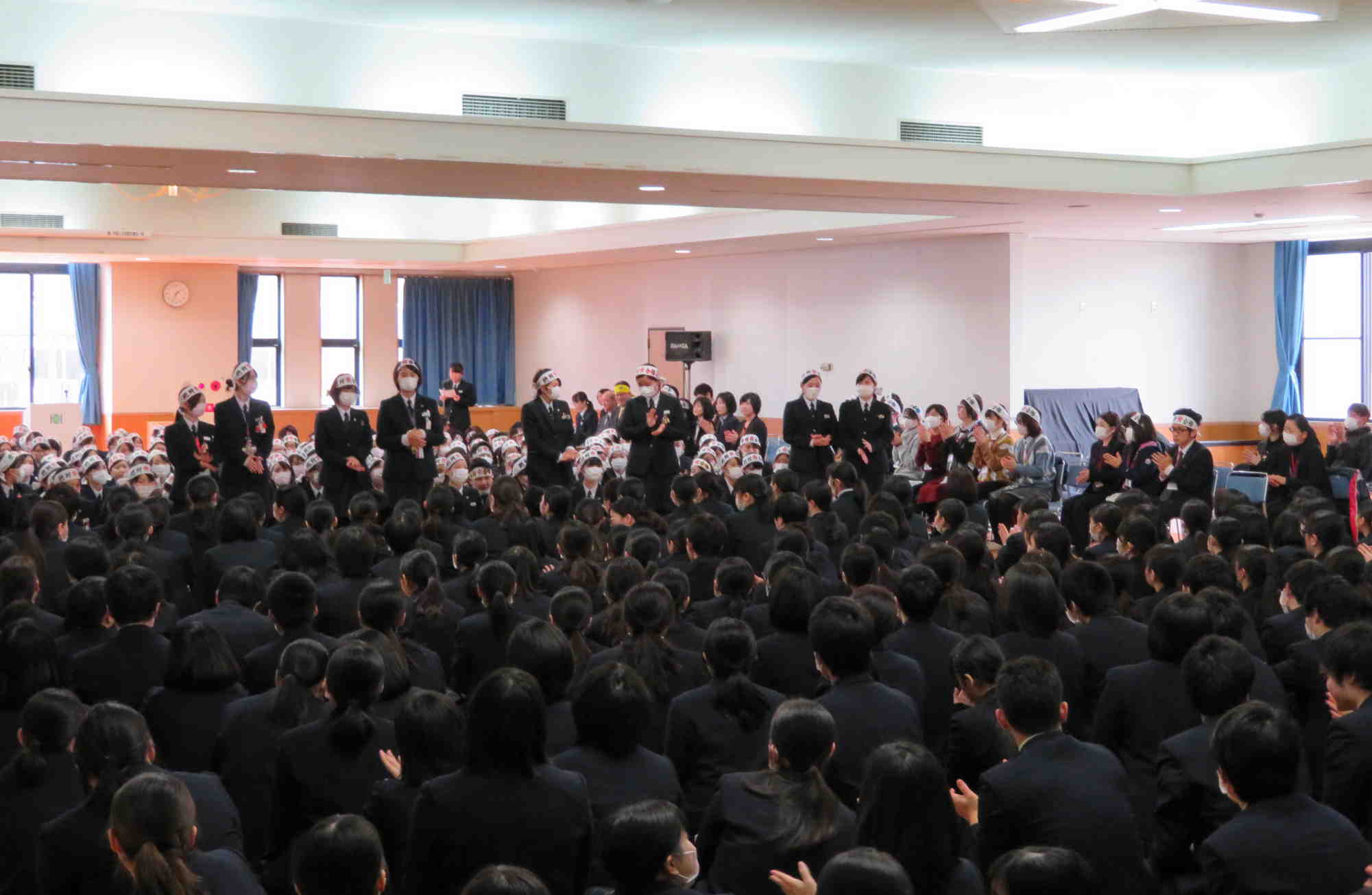 看護学科基礎課程・専門課程の5学年が一堂に会し、国試直前の受験生にエールを送りました。