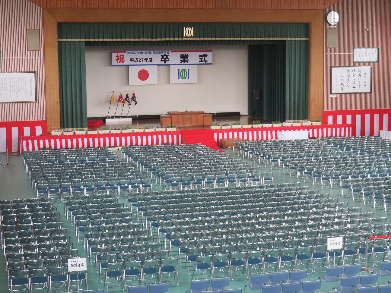 2/29 卒業式設営 2016年2月29日 最終更新日時 : 2019年4月4日 hooh 本日は短縮校時で、卒業式の設営・大掃除が行われました。 準備は万端です。思い出に残る素晴らしい卒業式にしましょう。 明日の卒業式はam9:30に生徒入場となります。 また、保護者用の送迎バスはpm1:45に鹿児島中央駅・鹿児島新港へ向けて出発いたします。(朝の送迎はありません) 当日は周辺の混雑が予想されます。保護者の皆様におかれましては、時間に余裕を持ってご来場ください。 今月・3学期の行事予定 ↓↓↓↓↓↓↓↓ クリック・タップしてください。 3月行事予定 3学期行事予定