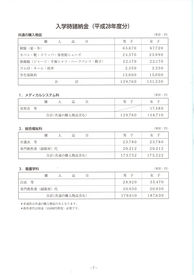 参考までに制服代・諸経費はコチラ