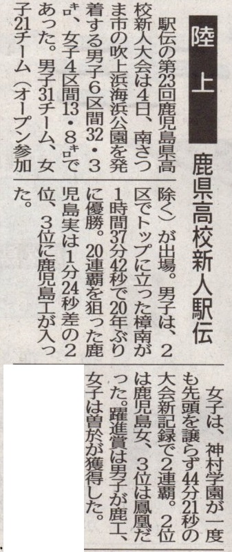 また、4日(土)には第23回鹿児島県高校新人駅伝大会が行われ、女子の部で3位に入賞しました。