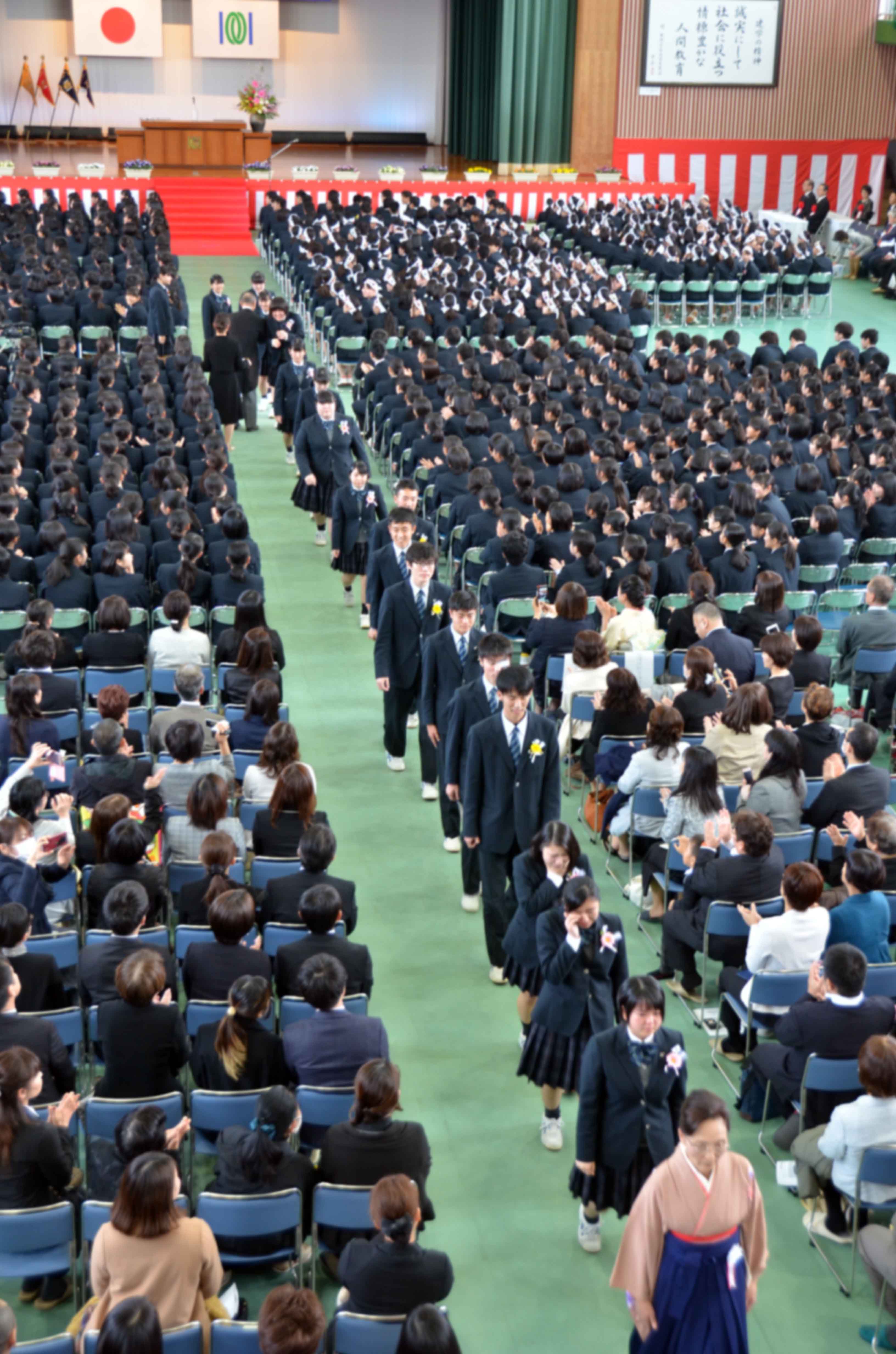 卒業式2本日9:30から高校第52回、看護学科専門課程第13回卒業式が行われました。数多くのご来賓や保護者の方々が参列下さり、保護者席は満席になり途中で座席を追加するほどでした。体育館全体が凛とした雰囲気の中で式は進みました。卒業生たちは、どこか晴れやかな、どこか憂いを帯びた表情で、式の途中では堪えきれず涙をそっと拭う姿も見受けられました。3年間、5年間この学園で過ごした日々を卒業生たちはどのように振り返ったのでしょうか。多くの学校の中から本校を選び入学してくれたことを心より感謝します。新しい環境に飛び込んでいく卒業生たちが、はつらつとした毎日を過ごしていけるよう願っています。卒業おめでとう。