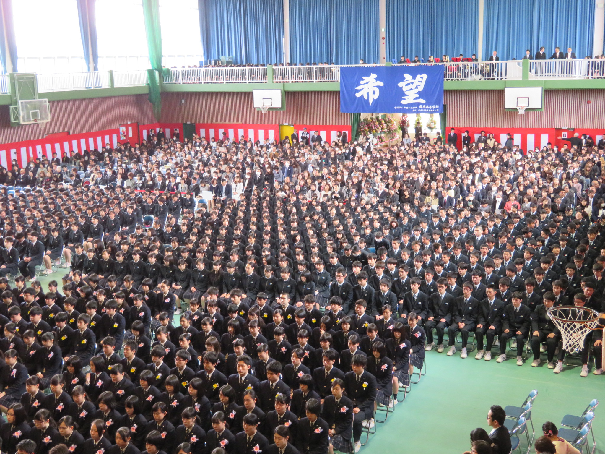 在校生・来賓・保護者・職員に見守られ,祝福されて,
