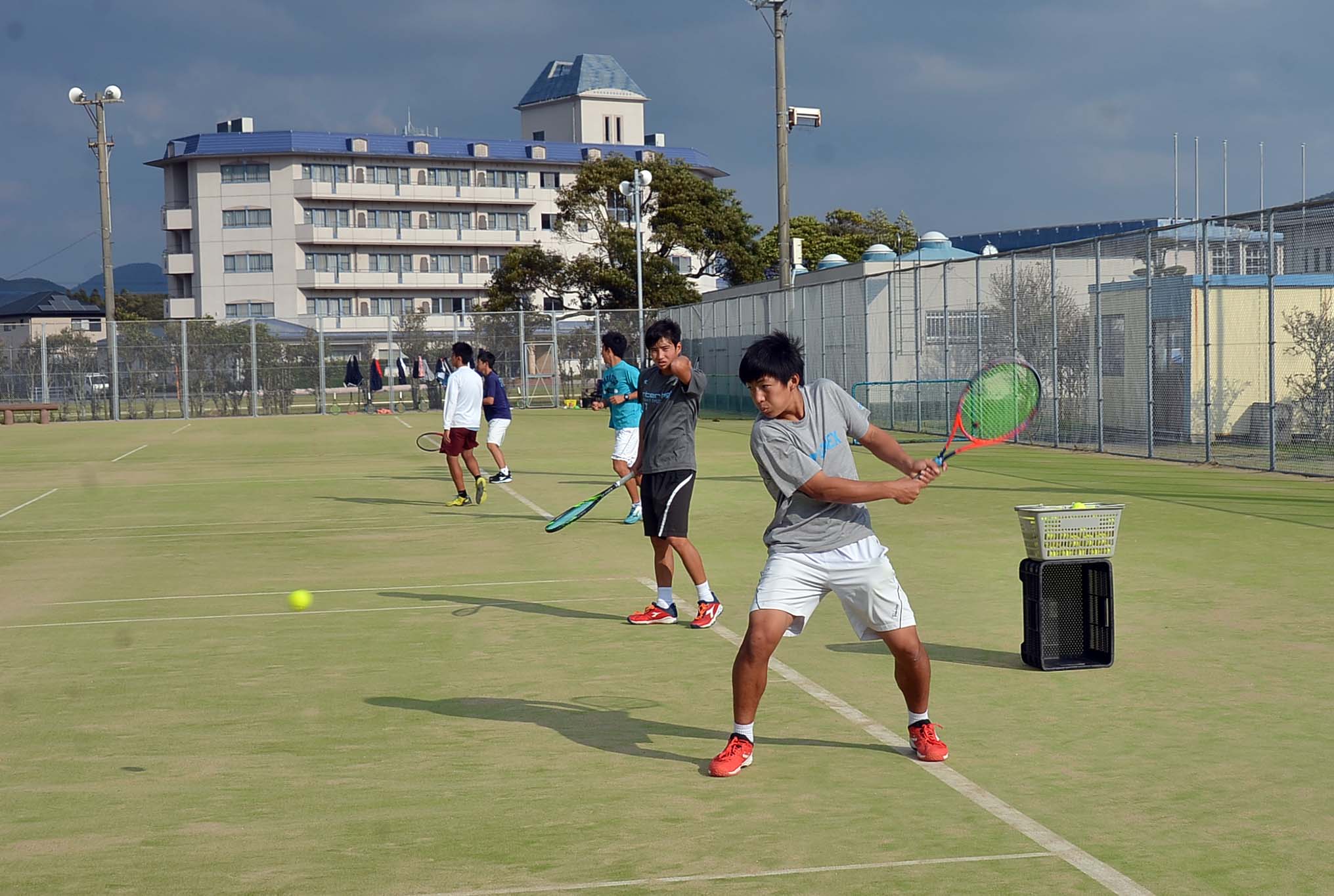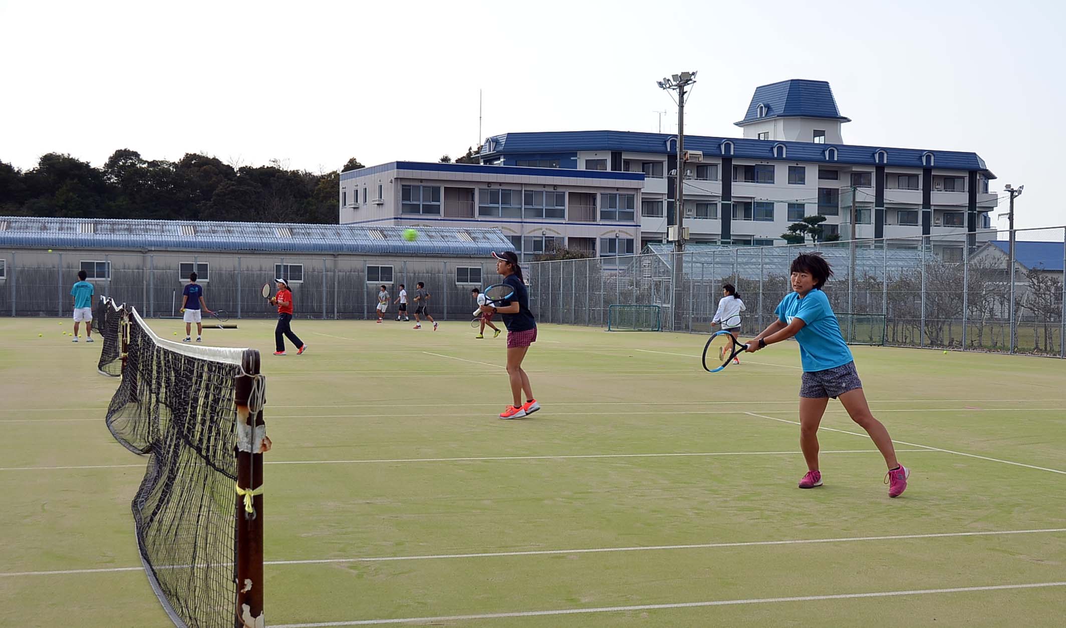 センバツ前 男子テニステニスの全国選抜大会(3月20日開会式:博多の森)が近づいてきました。2年生の修学旅行が終わり、男女とも1・2年生そろって練習に熱が入ってきました。