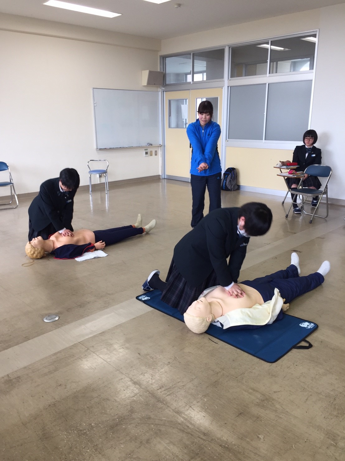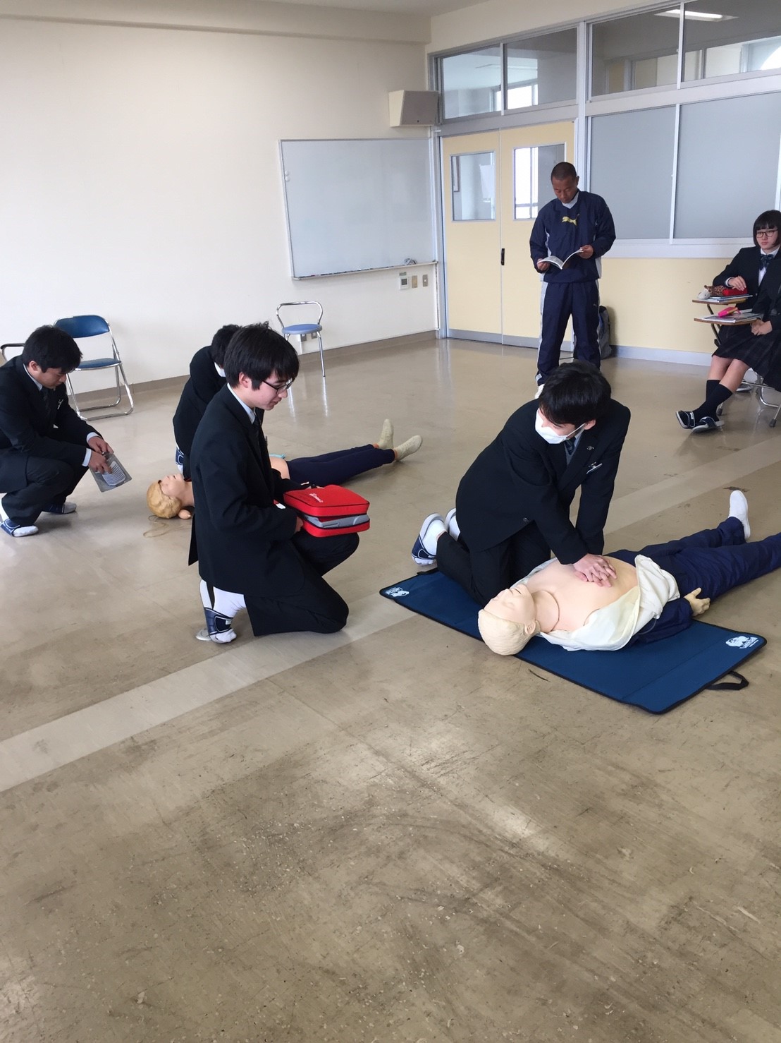 保健の授業において普通科の生徒が心肺蘇生法を学びました。