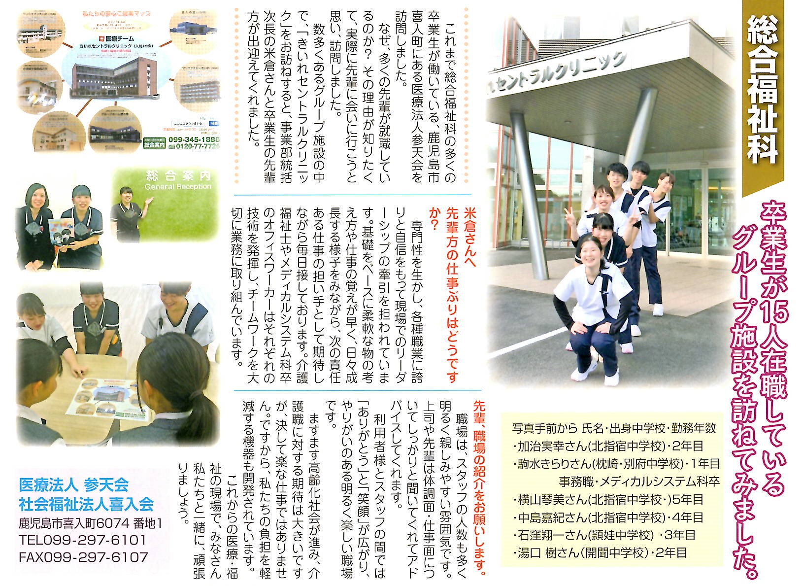 先日発行された第3弾フリーマガジン「M’マガ」。本校総合福祉科卒業生が多く在職している鹿児島市のグループ施設の記事も掲載されており、そんな先輩方の姿を見て先日卒業した3年生も就職予定です。