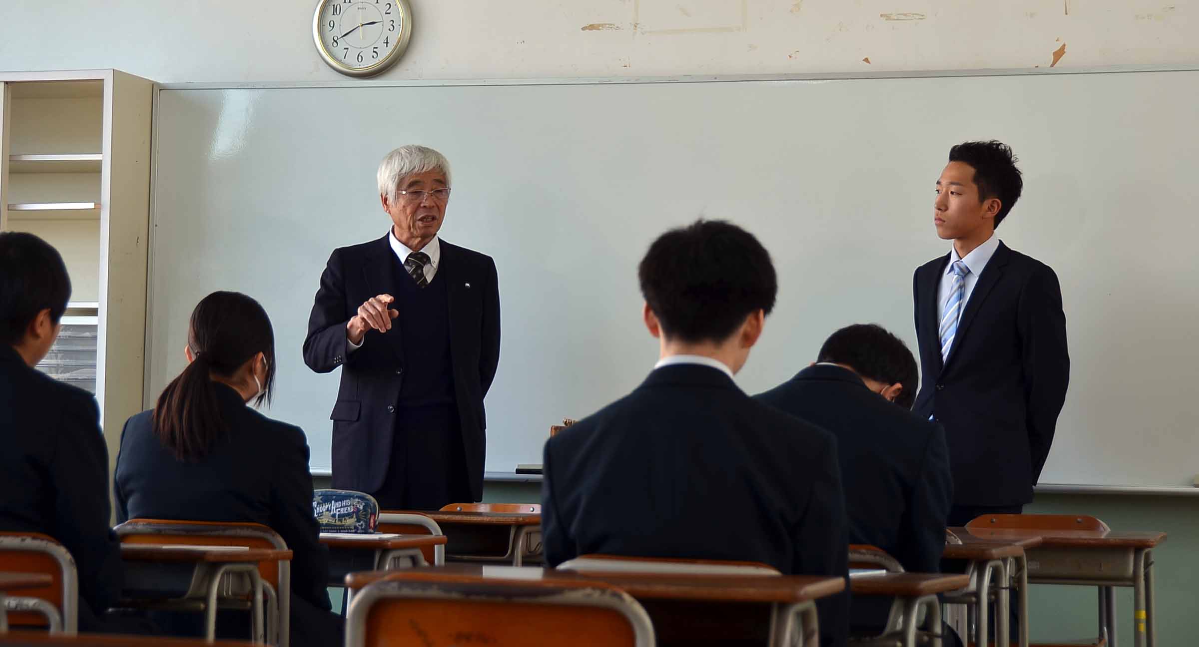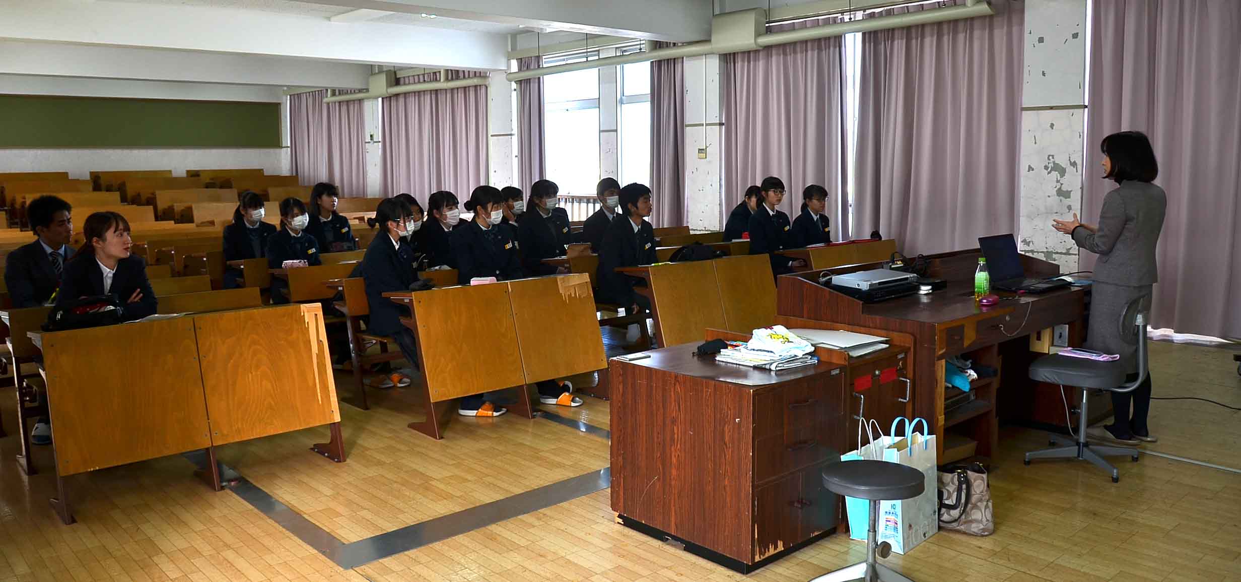 職業理解ガイダンス 鹿大きちんとした職業選択をしてもらおうと、様々な職業のガイダンス教室が開かれました。3年生は卒業し、2年生は修学旅行で不在のため、対象は1年生だけです。