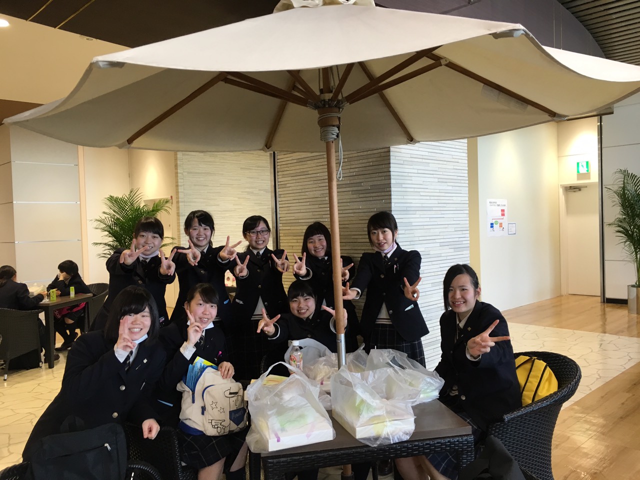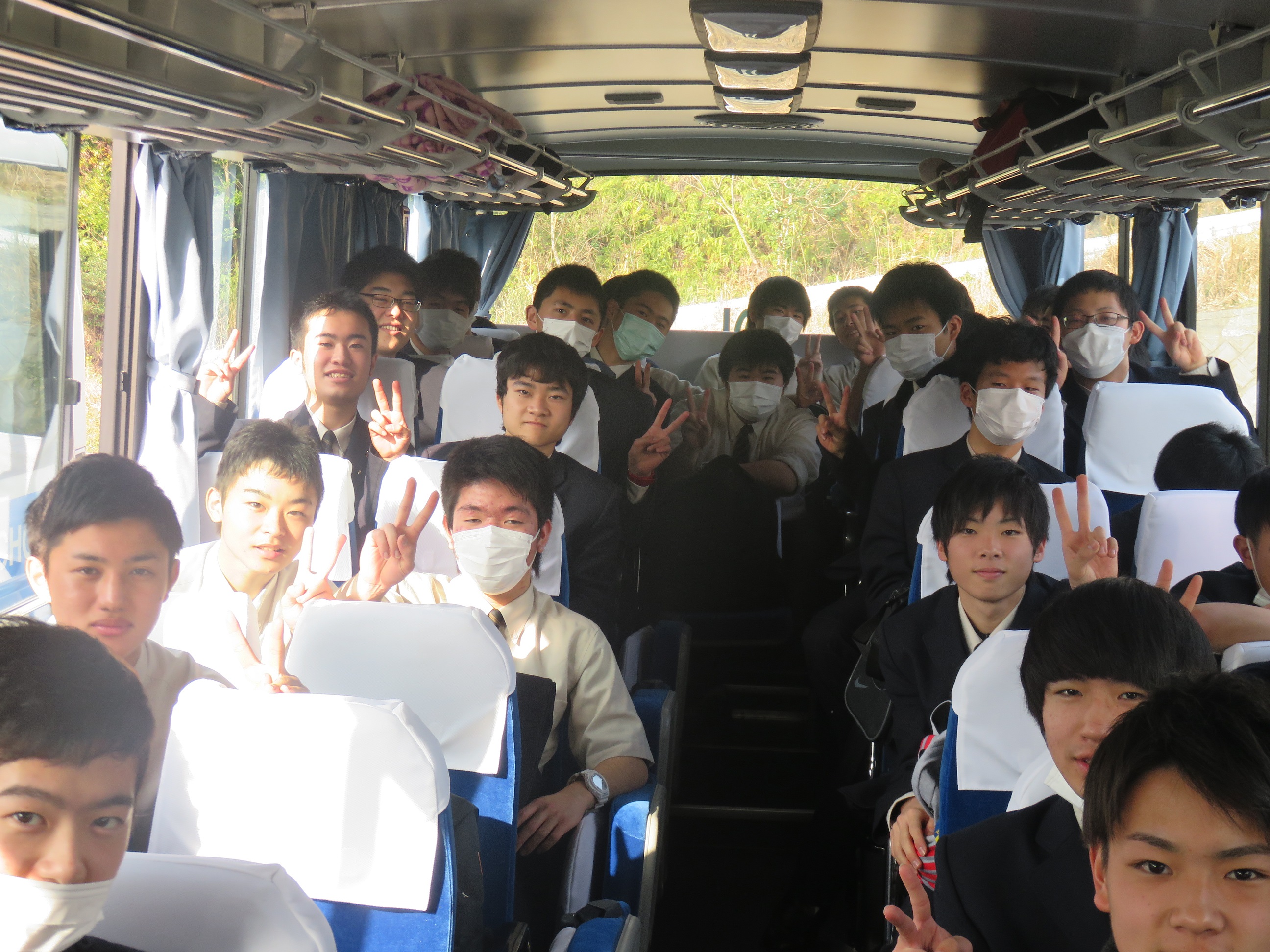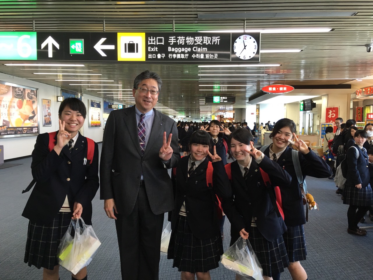 初日は、スクールバスにて鹿児島空港へ。羽田空港到着後、スカイツリー見学・ソラマチ散策という予定でしたが、羽田空港付近が濃霧のため、鹿児島発着便に遅れや欠航が相次ぎ、鹿児島空港で5時間ほど待機することになりました。